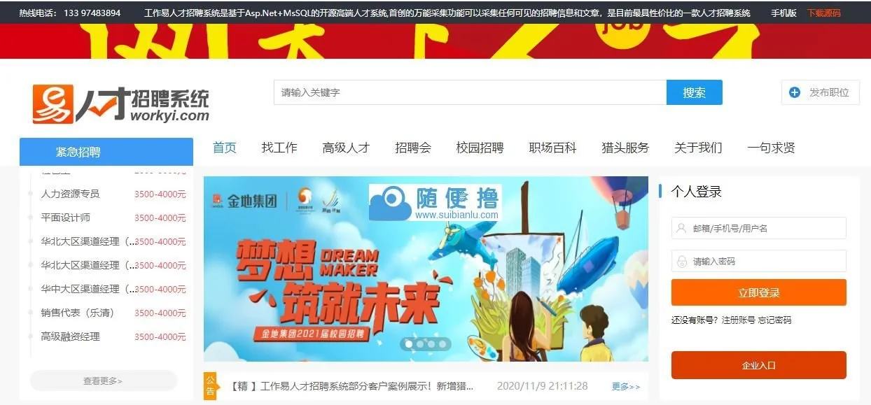 工作易人才招聘系统作为非常受欢迎的.net开源人才系统平台,并获得了了国家《计算机软件著作权版权证书》。并努力为用户提供了各种功能。用户可以利用这些功能搭建自己的专业招聘网站。