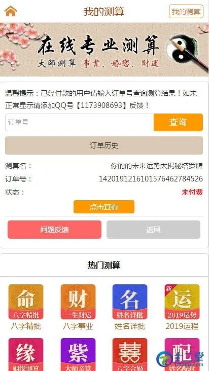 塔罗牌占卜爱情塔罗牌源码+PHP独立后台等 admin 编辑 商品价格 VIP免费下载 联系客服 立即下载 虚拟商品,自动发货 7 天无忧退款 塔罗牌占卜爱情塔罗牌源码+PHP独立后台等外面的很多都是微信公众号版本,这个是可以不用公众号就可以直接测试的。