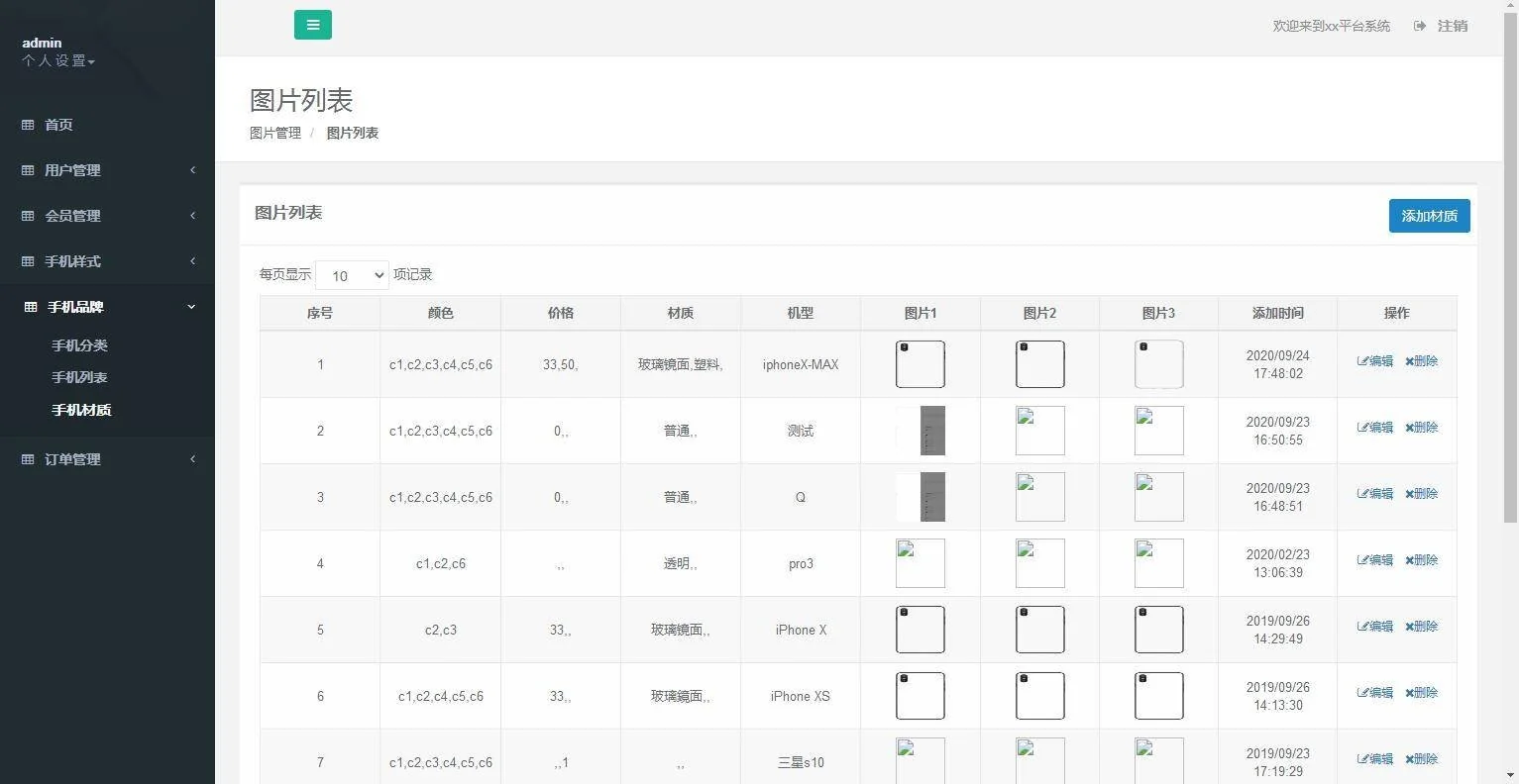 4.开源API 可以在后台编辑手机壳型号以及图片,和自定义图片,前台可以直接选择,超方便的diy手机壳定制软件, 可以二次开发,加其他产品的diy
