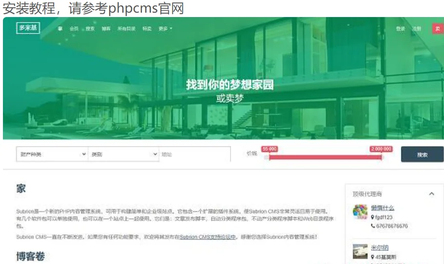 phpcms 绿色房地产网站源码下载