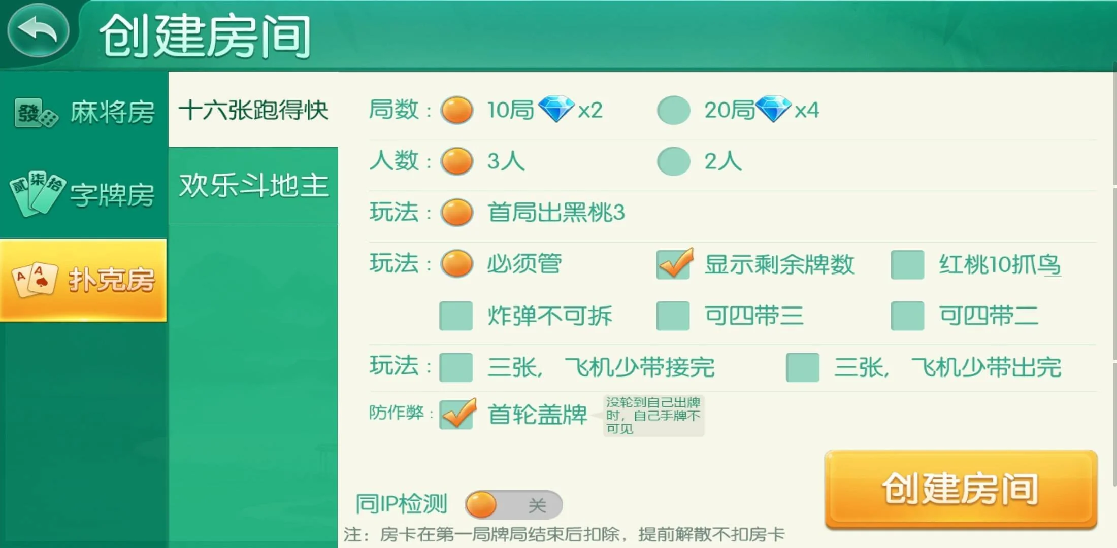 此游戏模式为房卡场+金币场+比赛场,带亲友团俱乐部,控制为透视+牌率