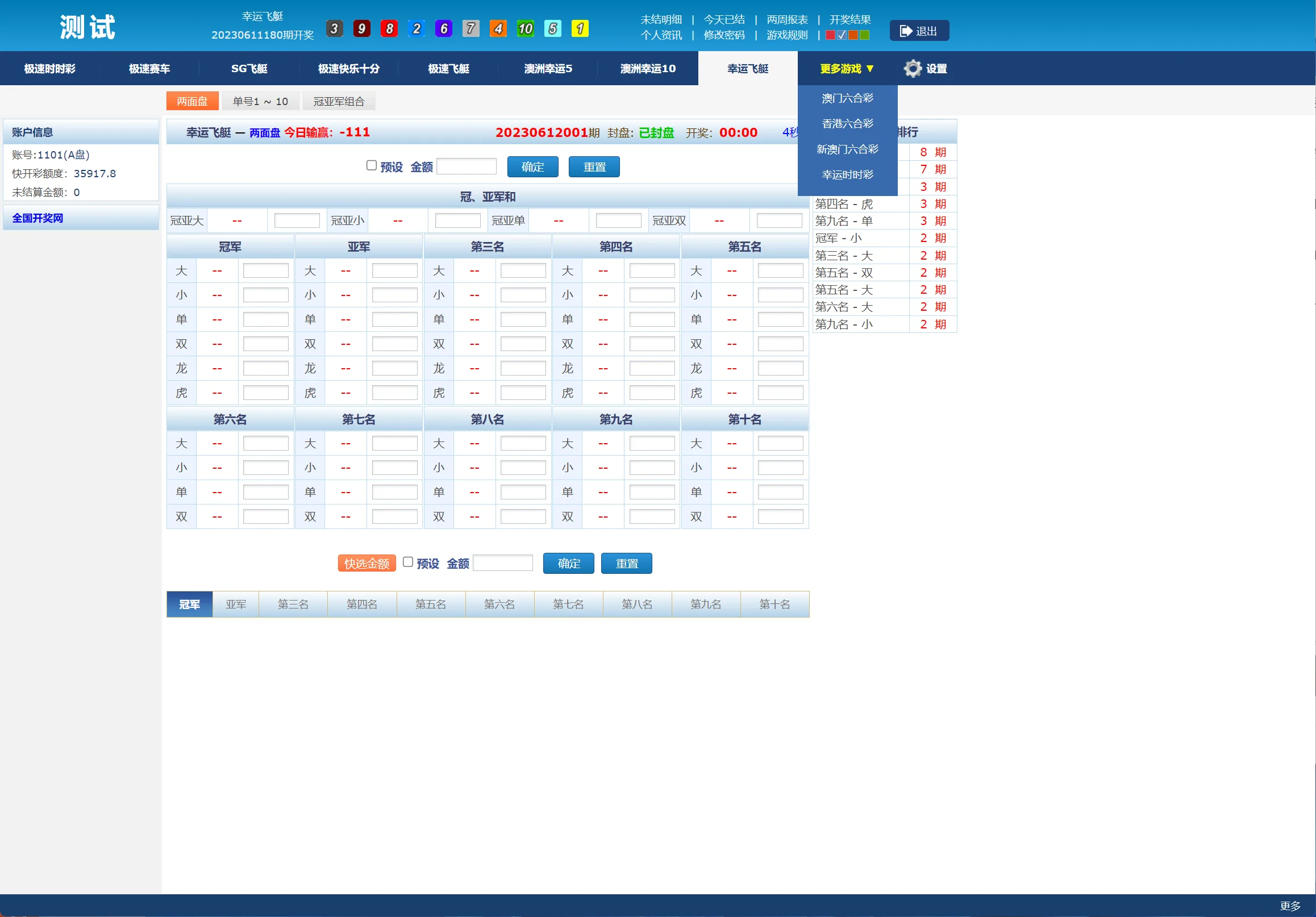 【商业收费源码】最新修复SG138信用盘+现金盘,138导航网 admin 编辑 商品价格 ¥3800 联系客服 立即购买 已测试可商用 已查后门 包含搭建服务 售后 30 天 有两套前端极速时时彩,极速赛车,SG飞艇,极速快乐十分,极速飞艇,澳洲幸运5,澳洲幸运10,澳门六合彩,香港六合彩,新澳门六合彩,幸运时时彩信用+现金 预设控制开奖结果完美具体看视频 您的浏览器不支持视频播放 第二套前端