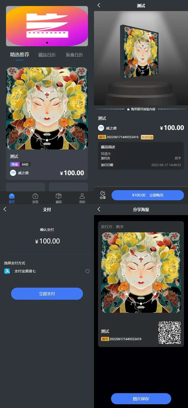 【商业收费源码】前后端开源NFT数藏源码 带合成以及兑换数字藏品 数藏盲盒模式 空投藏品上的BSN链 admin 编辑 商品价格 ¥999 联系客服 立即购买 已测试可商用 已查后门 包含搭建服务 售后 30 天