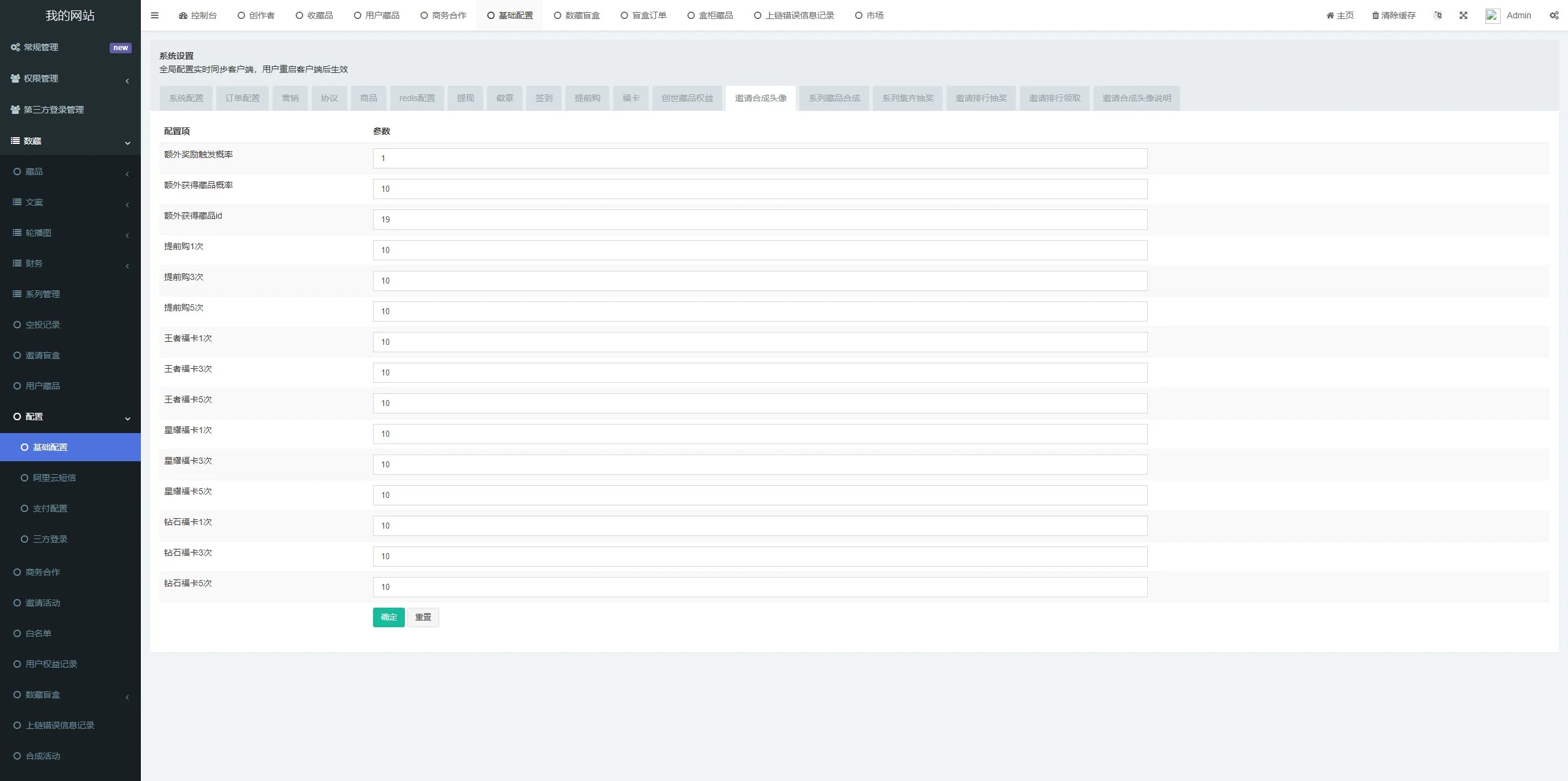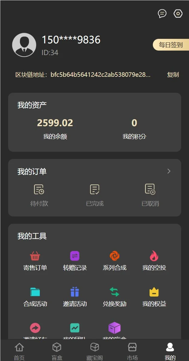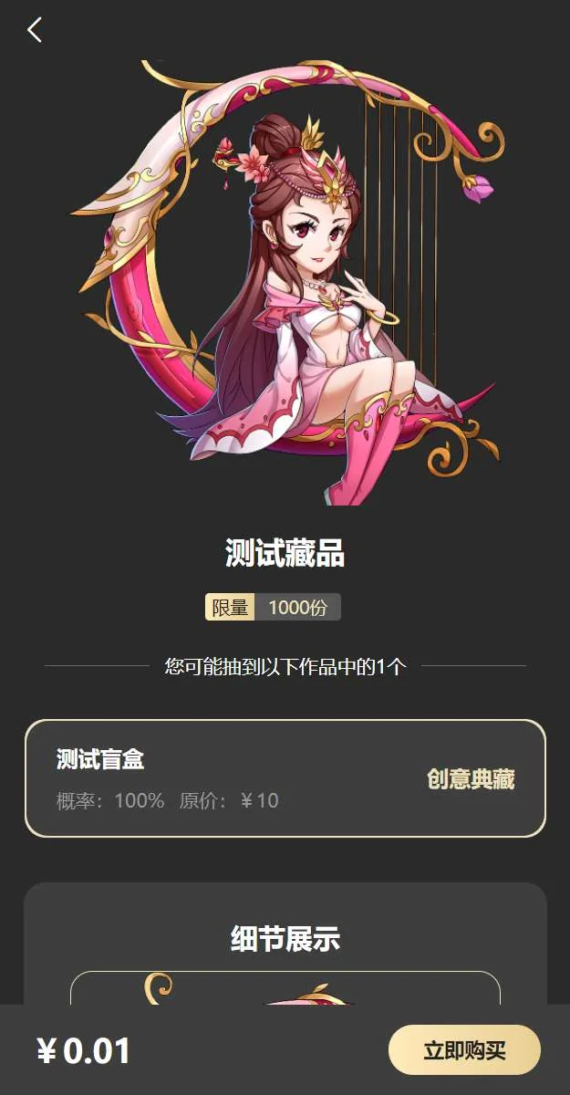 5.盲盒:购买盲盒随机抽取藏品,后台可设置盲盒中的奖品