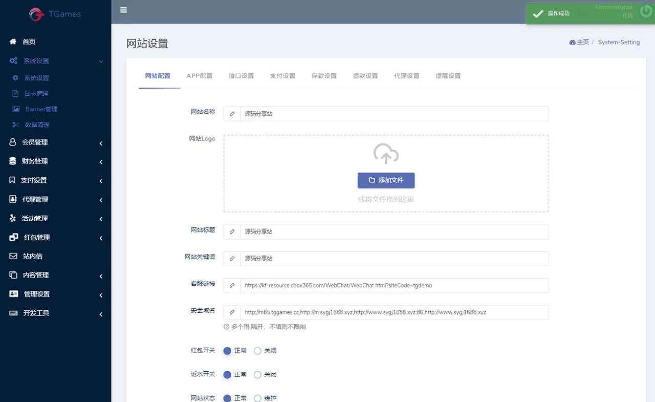 【商业收费源码】TGgroup娱乐城系统源码TG游戏API接口厂商 admin 编辑 商品价格 ¥1200 联系客服 立即购买 已测试可商用 已查后门 包含搭建服务 售后 30 天 源码介绍TGgroup娱乐城系统源码TG游戏API接口厂商前端后端由PHP语言开发,vue框架,新增USDT虚拟币充值和提现通道需要接口开户的联系站长 网站截图 手机版截图 后台截图