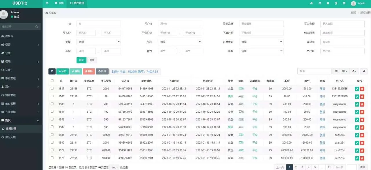 【商业收费源码】VUE版/USDT微盘系统/微盘外汇系统/微交易/虚拟币竞猜 admin 编辑 商品价格 VIP免费下载 联系客服 立即下载 虚拟商品,自动发货 7 天无忧退款 此系统见过的应该都很眼熟,这是一套后端fastadmin框架开发的微盘系统USDT充提,双语言,源码包含VUE源码。