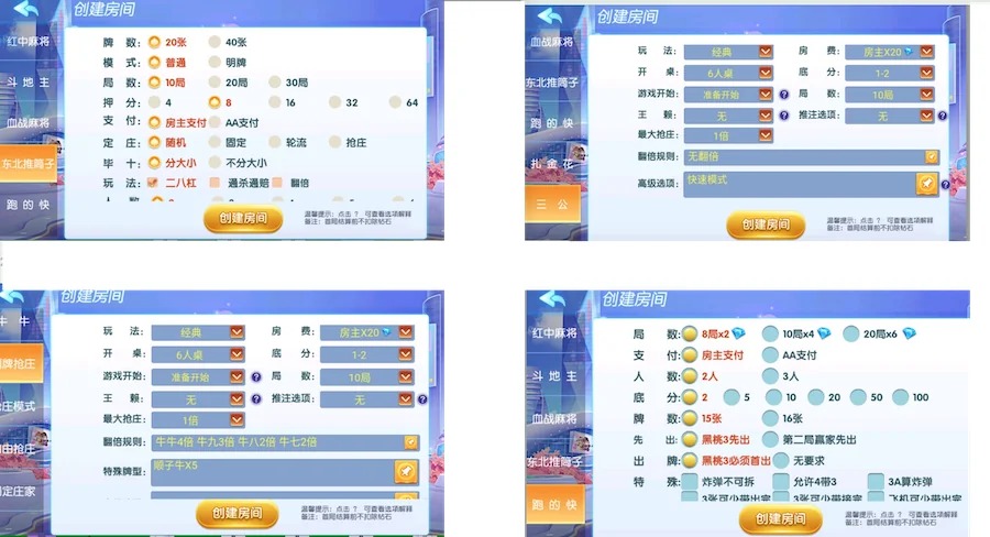 内含遊戲:斗地主,跑得快,三公,牛牛,札金花,红中麻将,血战麻将,东北推筒子