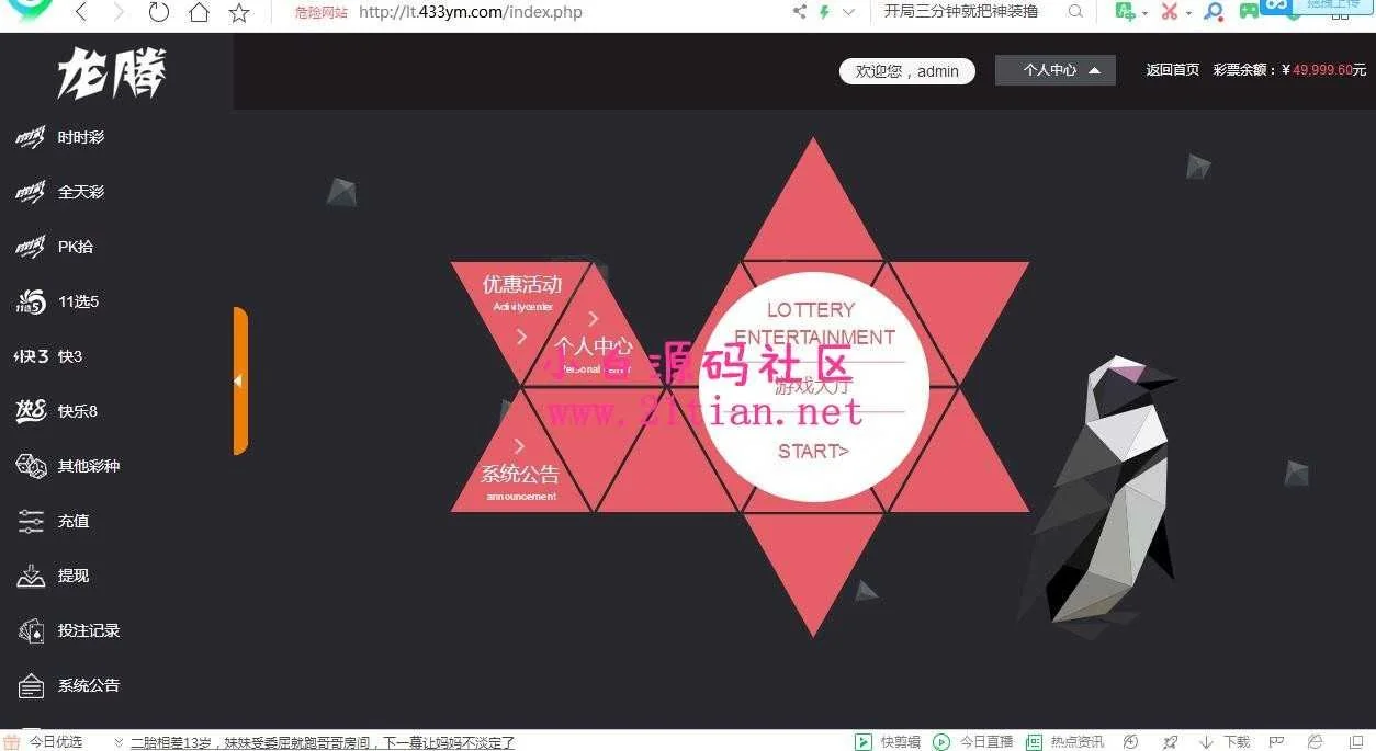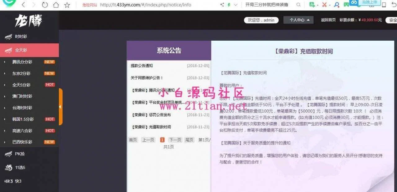 龙腾YL整站美化版源码,内核基于xingcai,界面真的算的上是好看的了,WAP手机端也是经过美化,跟传统的不一样,详细看下图!本站已经修复了90%以上开奖!功能算的上很齐全b * y K .了!干掉了好几个已知后门!程序不保证非常完美无BUG,但是玩玩还是觉得不错的,其他的不清楚娱乐网源码自动采集了,自行研究吧!