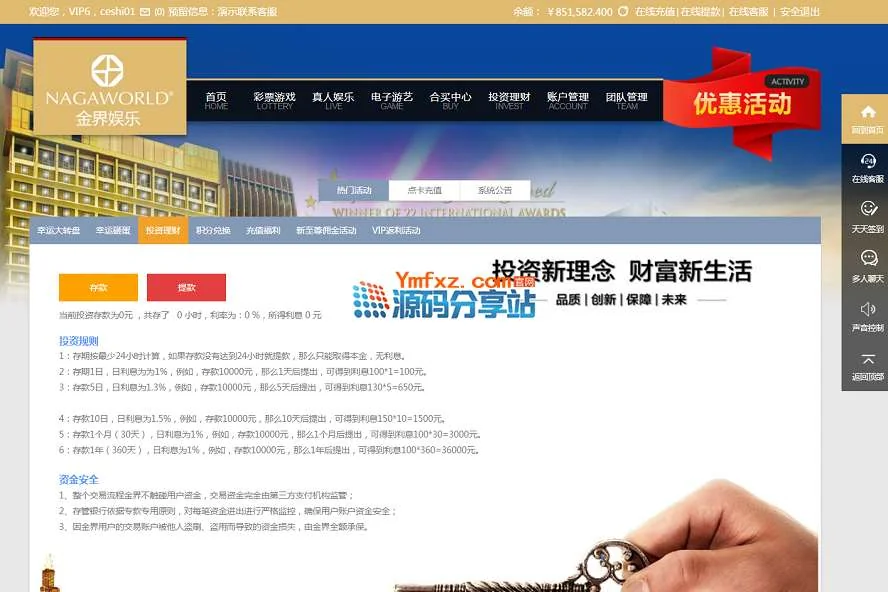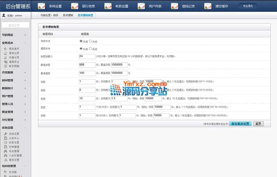 目前这套系统新增加了投资理财模块,相当于余额宝模式的,存款进去就能得到利息,