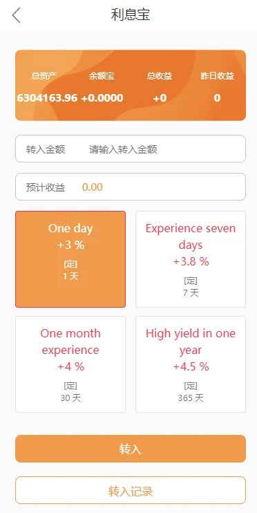 系统增加打针/叠加组设置,后台釆取全新框架,余额宝分为定数时间,一天,七天,一个月,一年,合约到就会产生收益