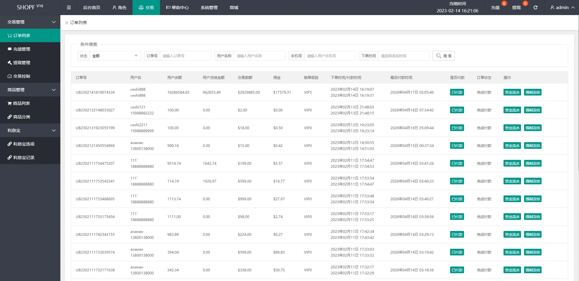 5.三级分销,带客服,等级优先,充值提现优先完美后台查询功能