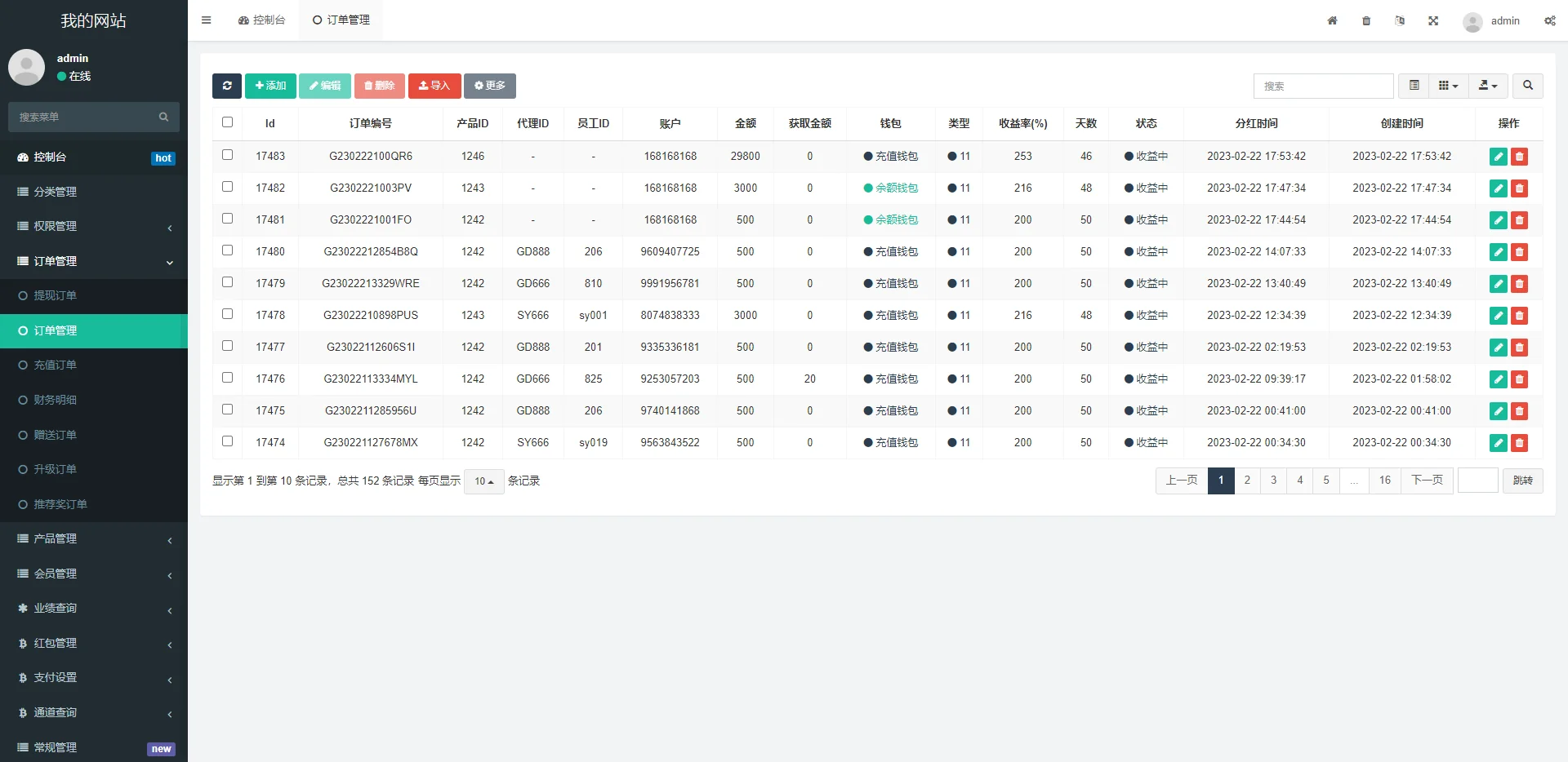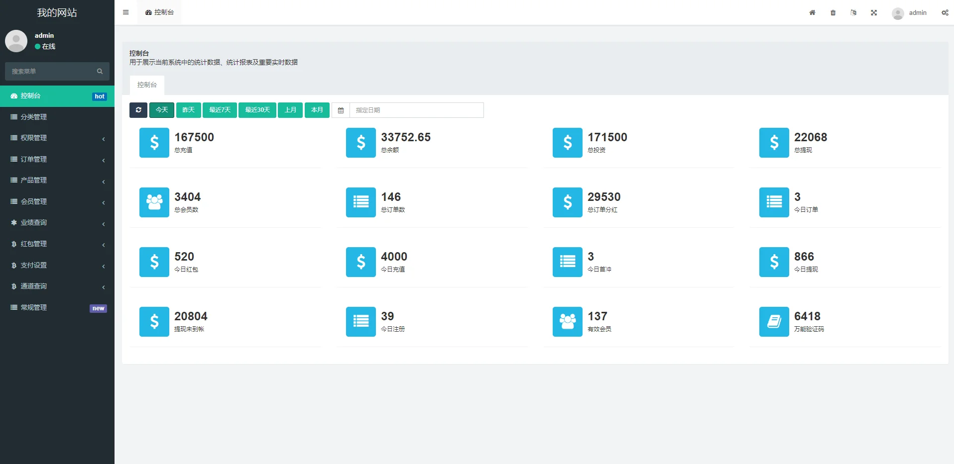 【商业收费源码】全新海外理财系统/理财分红系统/投资理财源码 admin 编辑 商品价格 ¥1500 联系客服 立即购买 已测试可商用 已查后门 包含搭建服务 售后 30 天 此套系统是别人正在运营的理财系统源码是FastAdmin框架全新开发得,源码全开源可二开其他语言系统功能基本满足运营需求,前端产品可以随意更改支付默认对接第三方,需要自行对接支付