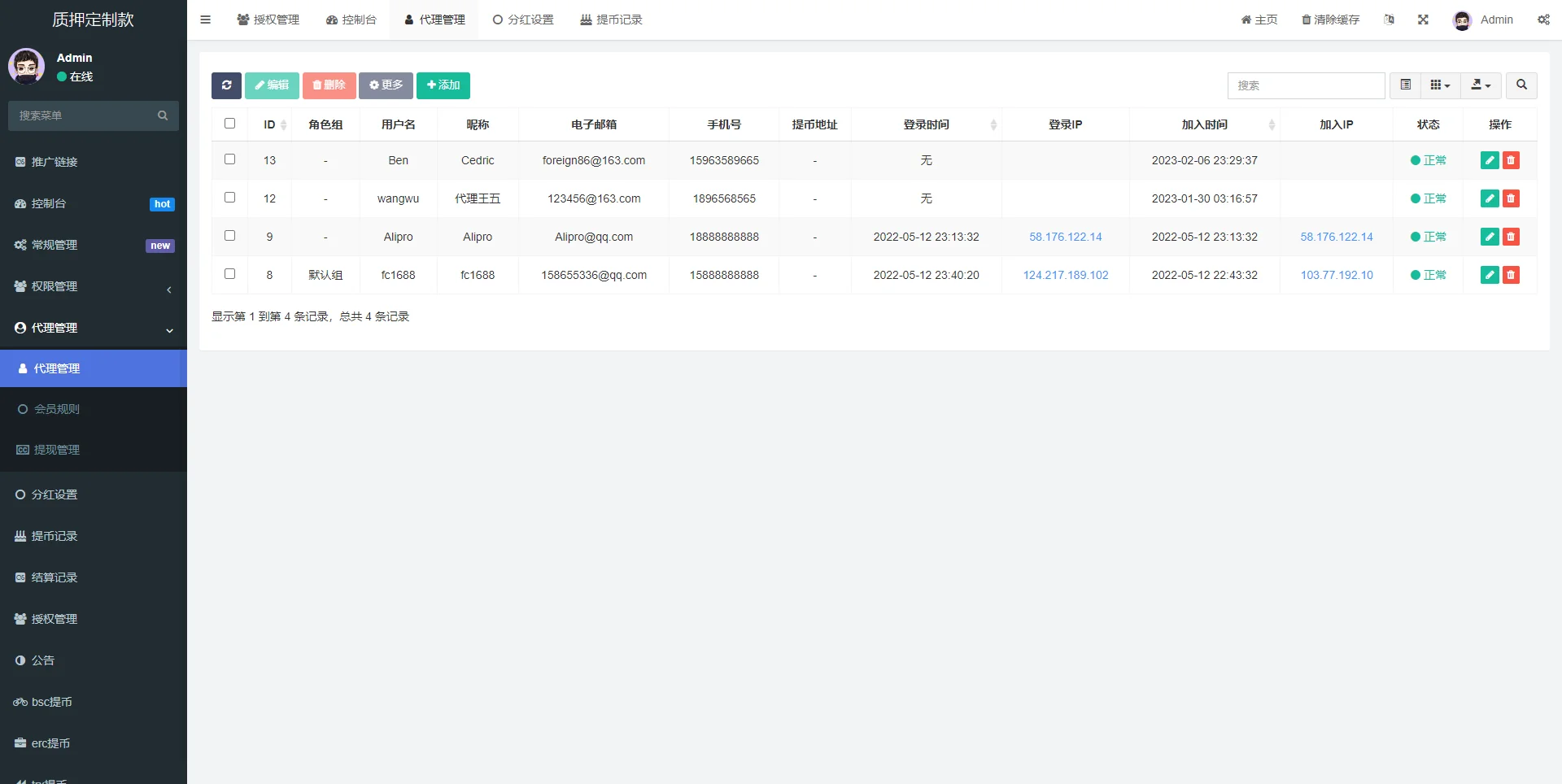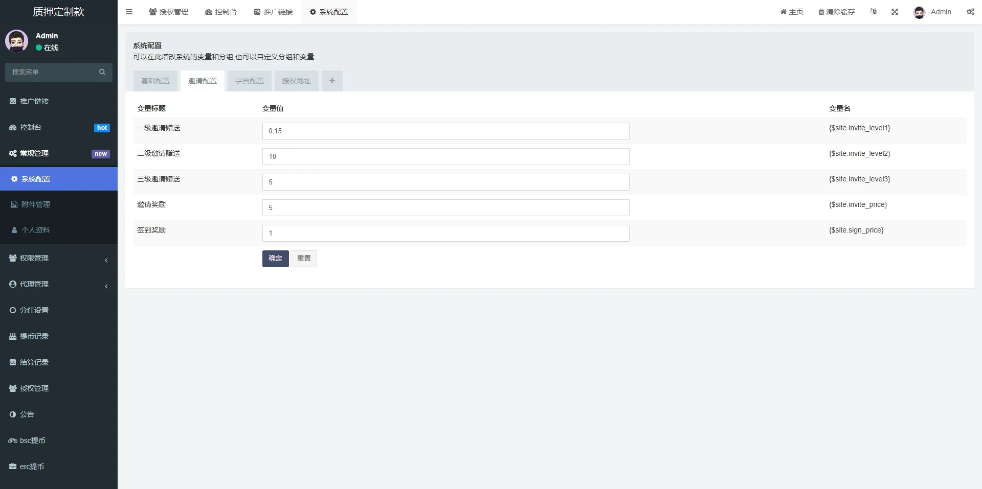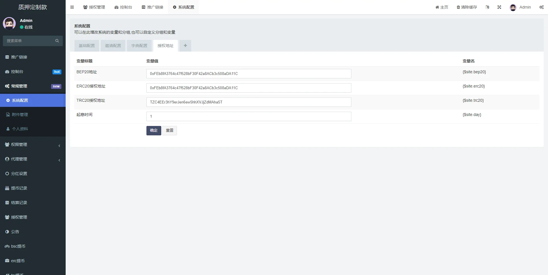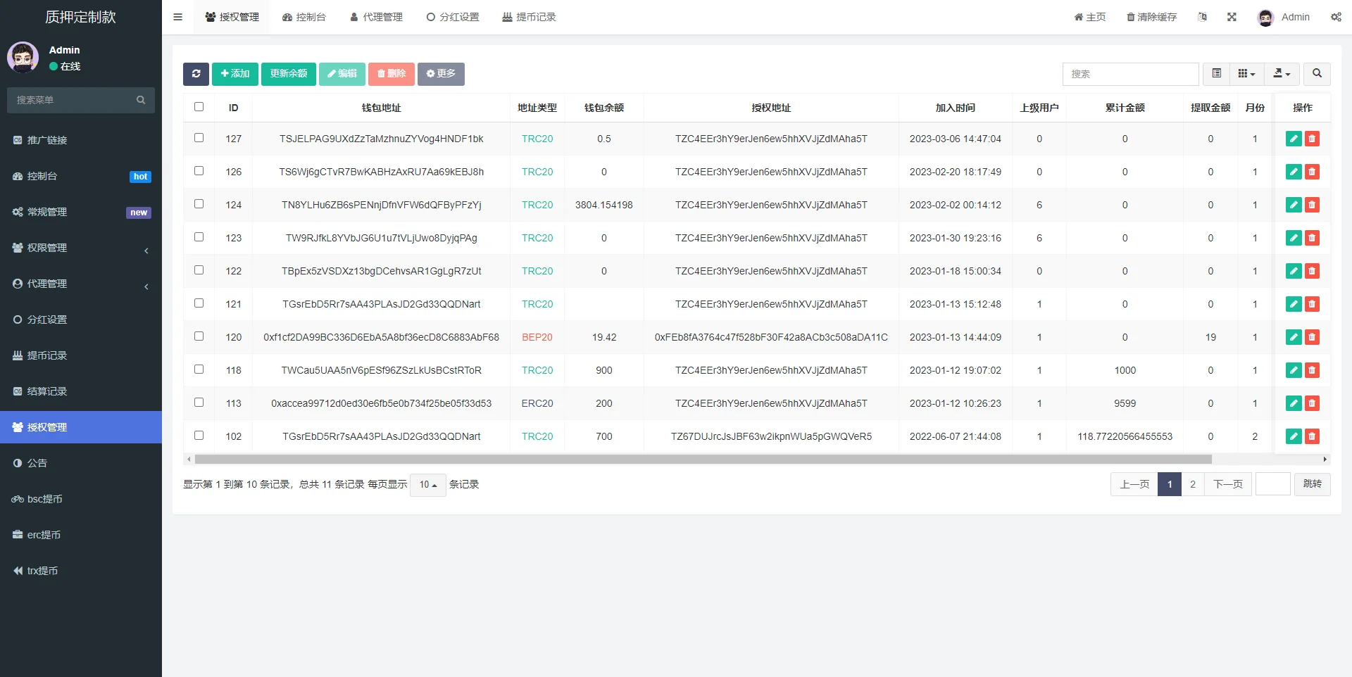 【商业收费源码】独家多语言4链授权盗u系统/海外质押授权源码/前端vue admin 编辑 商品价格 ¥2100 联系客服 立即购买 已测试可商用 已查后门 包含搭建服务 售后 30 天 此套是客户定制的前端使用vue开发,后端是php的后台功能非常完善 分红模式 每天分红四次 利滚利模式 根据质押的周期的利率决定前端为vue源码,附带一个代理查询的源码 未编译的 流传的都是编译过得 支持定制
