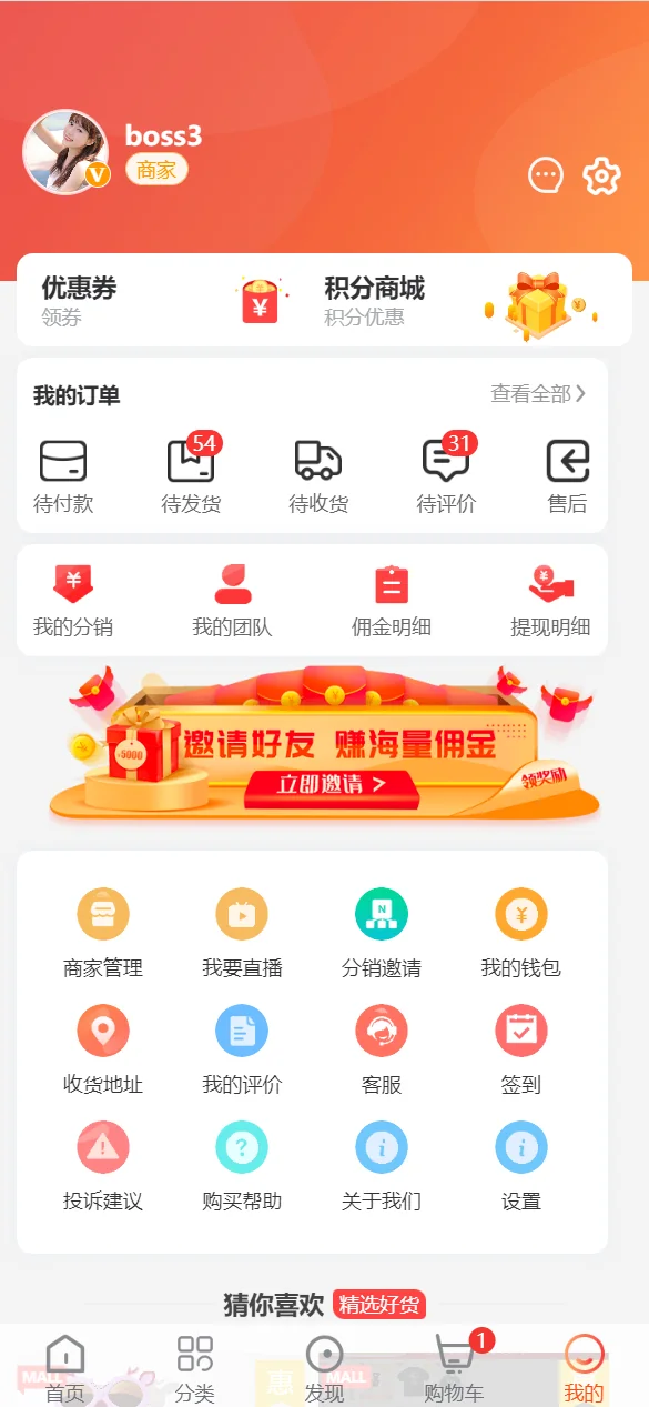8、代理商功能:跨境电商支持代理商功能,方便代理招商,商家入驻