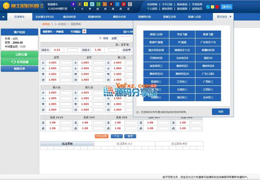 迪士尼3盘口网整站完整时时彩源码包含有手机端+采集器+完整安装教程