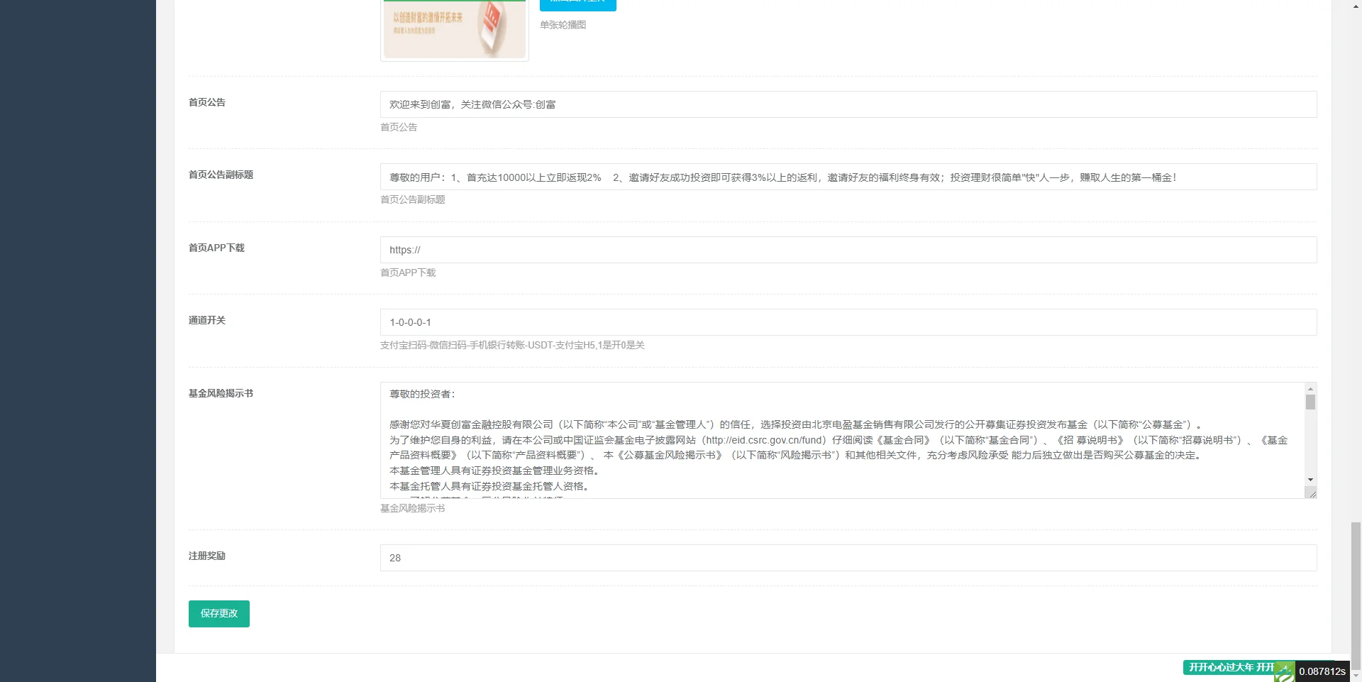 【商业收费源码】UNIAPP版股票基金财投资系统/投资理财基金源码 admin 编辑 商品价格 ¥2400 联系客服 立即购买 已测试可商用 已查后门 包含搭建服务 售后 30 天 投资理财源码。后台功能强大。前端vue基于TP5.1内核。优化并修复众多bug。移除多余的js代码。优化后端速度。展示视频 您的浏览器不支持视频播放
