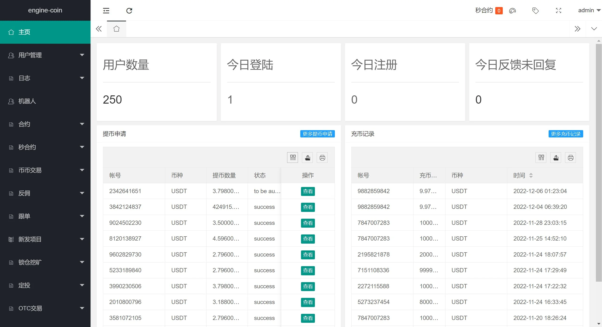 【商业收费源码】全新Java交易所(完美运营级) admin 编辑 商品价格 ¥2599 联系客服 立即购买 已测试可商用 已查后门 包含搭建服务 售后 30 天 支持币币交易,合约交易,秒合约交易,锁仓挖矿,跟单,定投计划6国语言(可定制更多的语言)前端PC版 VUE前端mobile版 uniapp后端Java