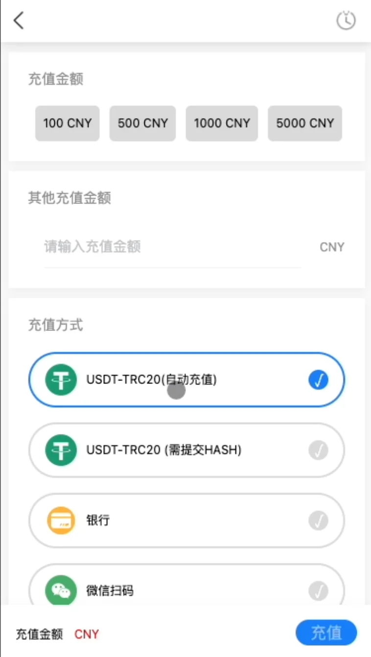 充值功能:微信扫码、支付宝扫码、银行卡转账、USDT转账、优盾USDT(手动、自动到账,USDT自动充提需升级优盾钱包套餐)。