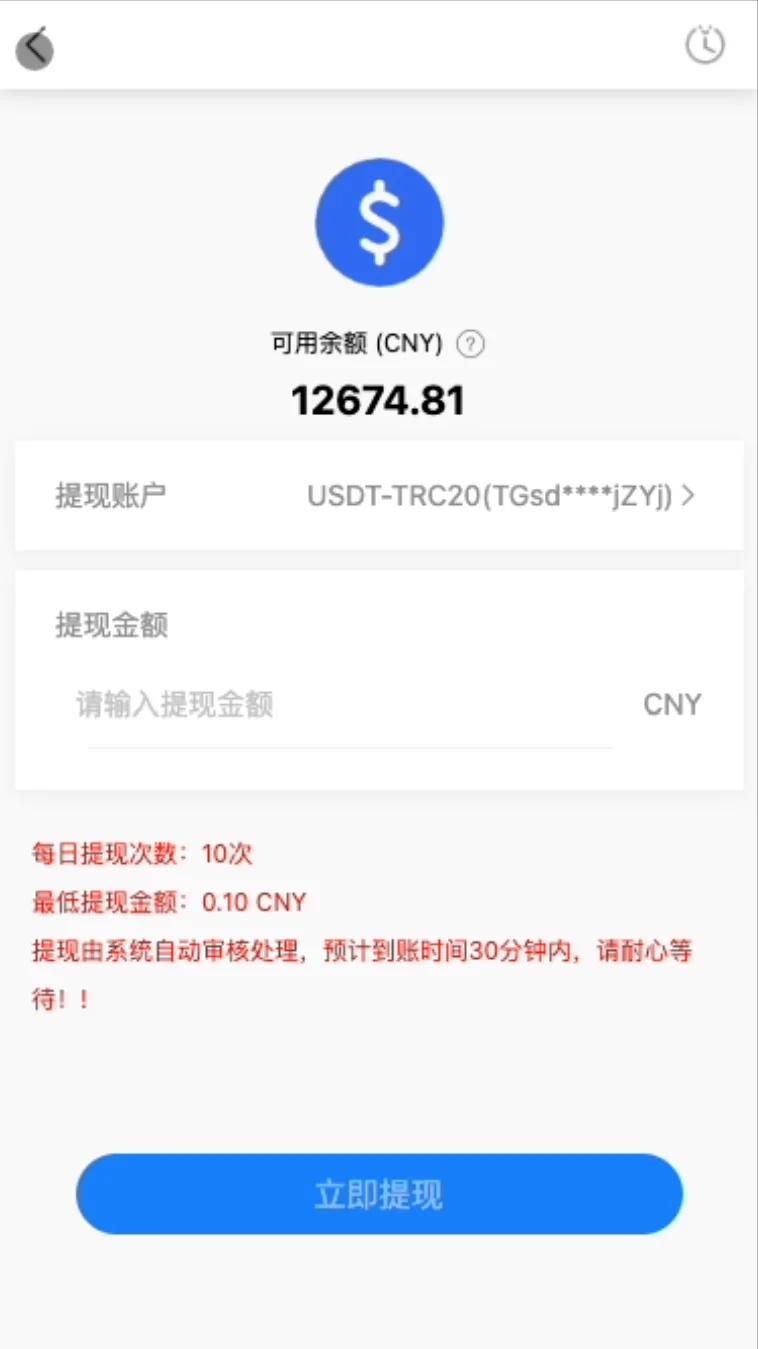 提现功能:微信、支付宝、银行卡、USDT(手动、自动到账,USDT自动充提需升级优盾钱包套餐