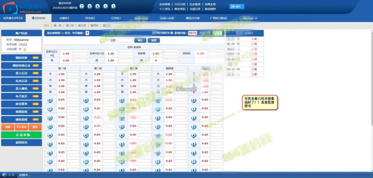 盘口源码带各种娱乐诚接口+手机版本的20分钟一开