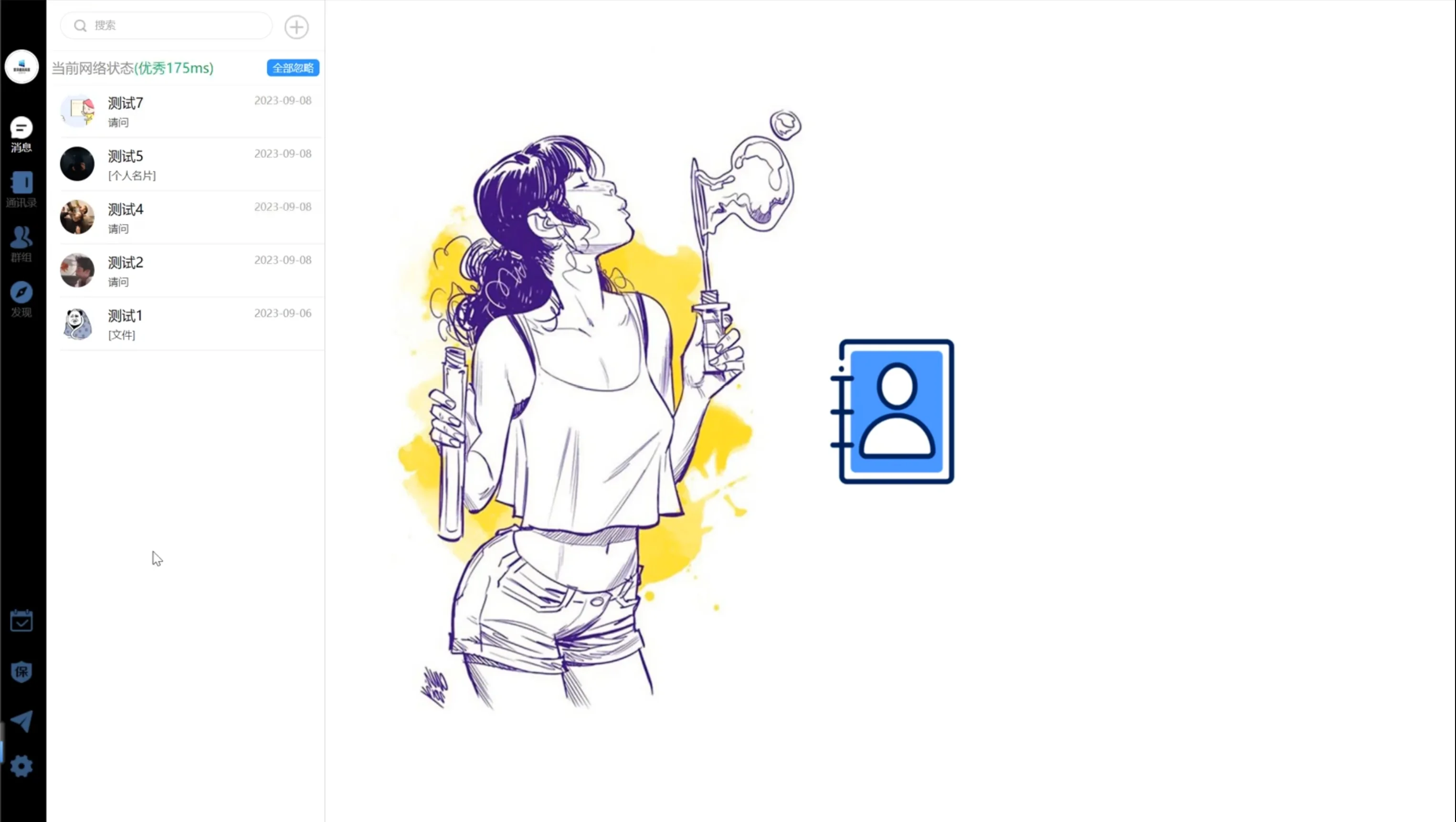 单聊:实现私信单聊,支持图片、语音、动态表情、小视频、红包、通话等各种通信能力,消息历史记录,支持漫游。