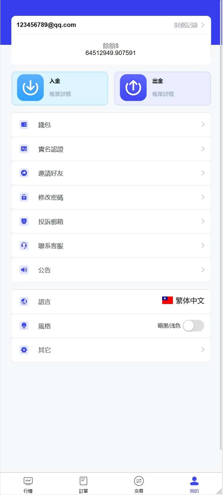 4.入金出金支持数字货币和银行卡(后台可编辑)