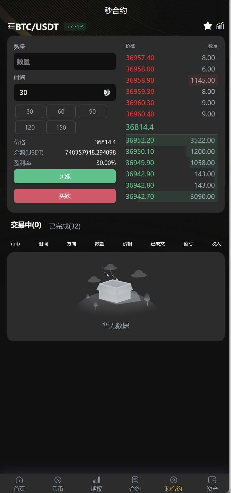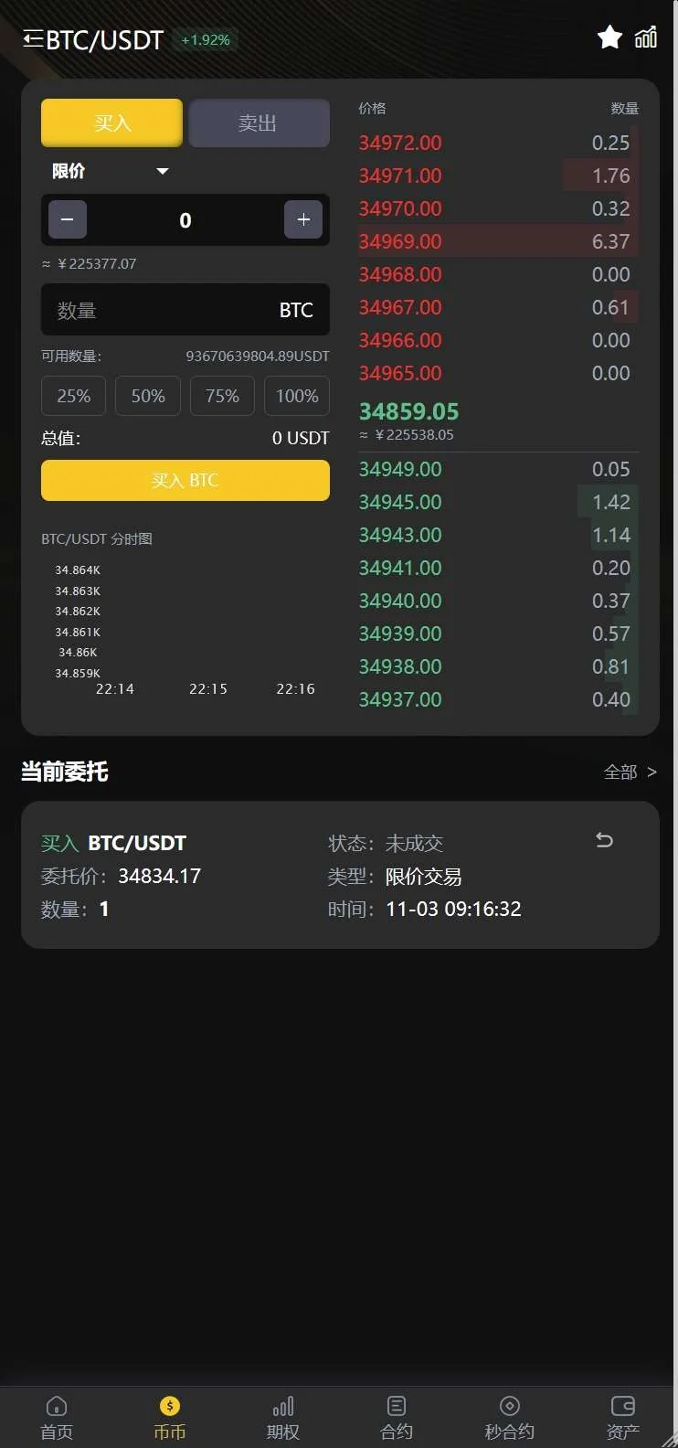 4. 币币交易(支持限价委托、市价委托,二次开发可加入其它委托模式)