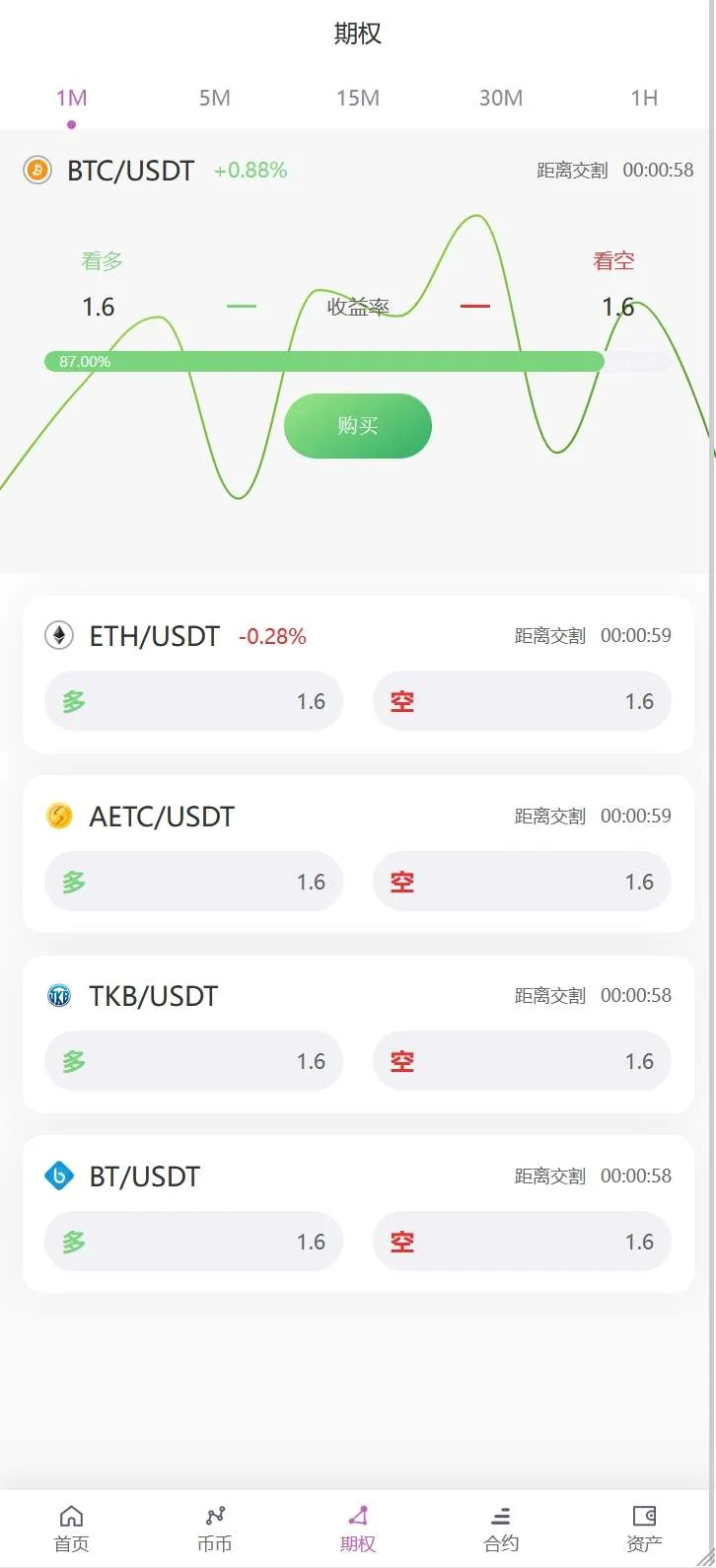 【商业收费源码】多国语言秒合约币币期权质押挖矿交易所源码下载 admin 编辑 商品价格 ¥1800 联系客服 立即购买 已测试可商用 已查后门 包含搭建服务 售后 30 天 多国语言 秒合约 币币交易 期权交易 质押挖矿 交易所 全开源页面展示视频 您的浏览器不支持视频播放 页面截图