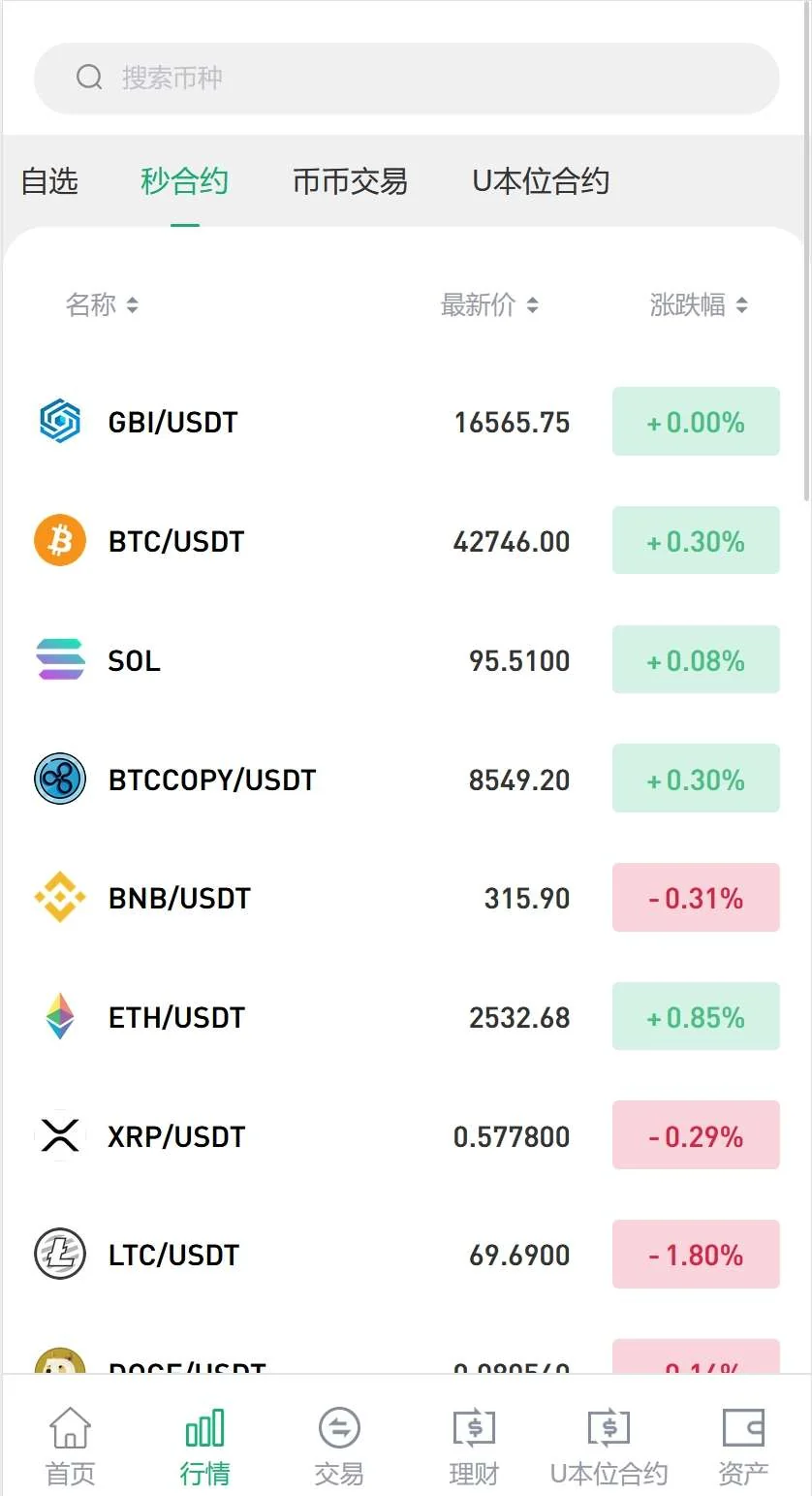 功能五,币币交易:引导客户参与币币交易,后台精准操控平台内任何币种的币价涨/跌实现客户盈利/爆仓。
