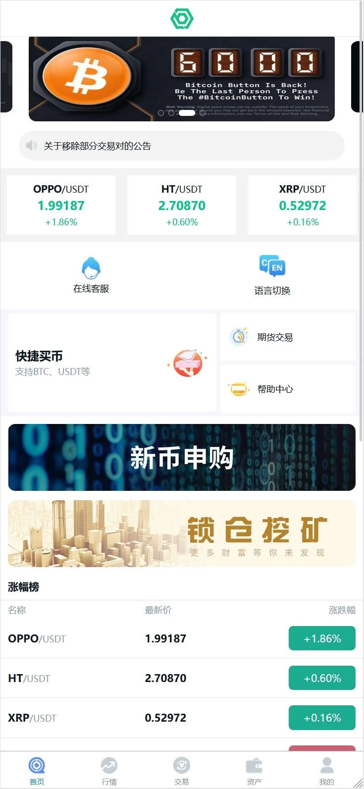 【商业收费源码】秒合约交易所 期权 带新币申购 源码下载 admin 编辑 商品价格 ¥1400 联系客服 立即购买 已测试可商用 已查后门 包含搭建服务 售后 30 天 秒合约交易所 带新币申购 源码下载 多语言 简繁英日 K线已修复 控制完美 PHP 开源页面展示视频 您的浏览器不支持视频播放 页面截图