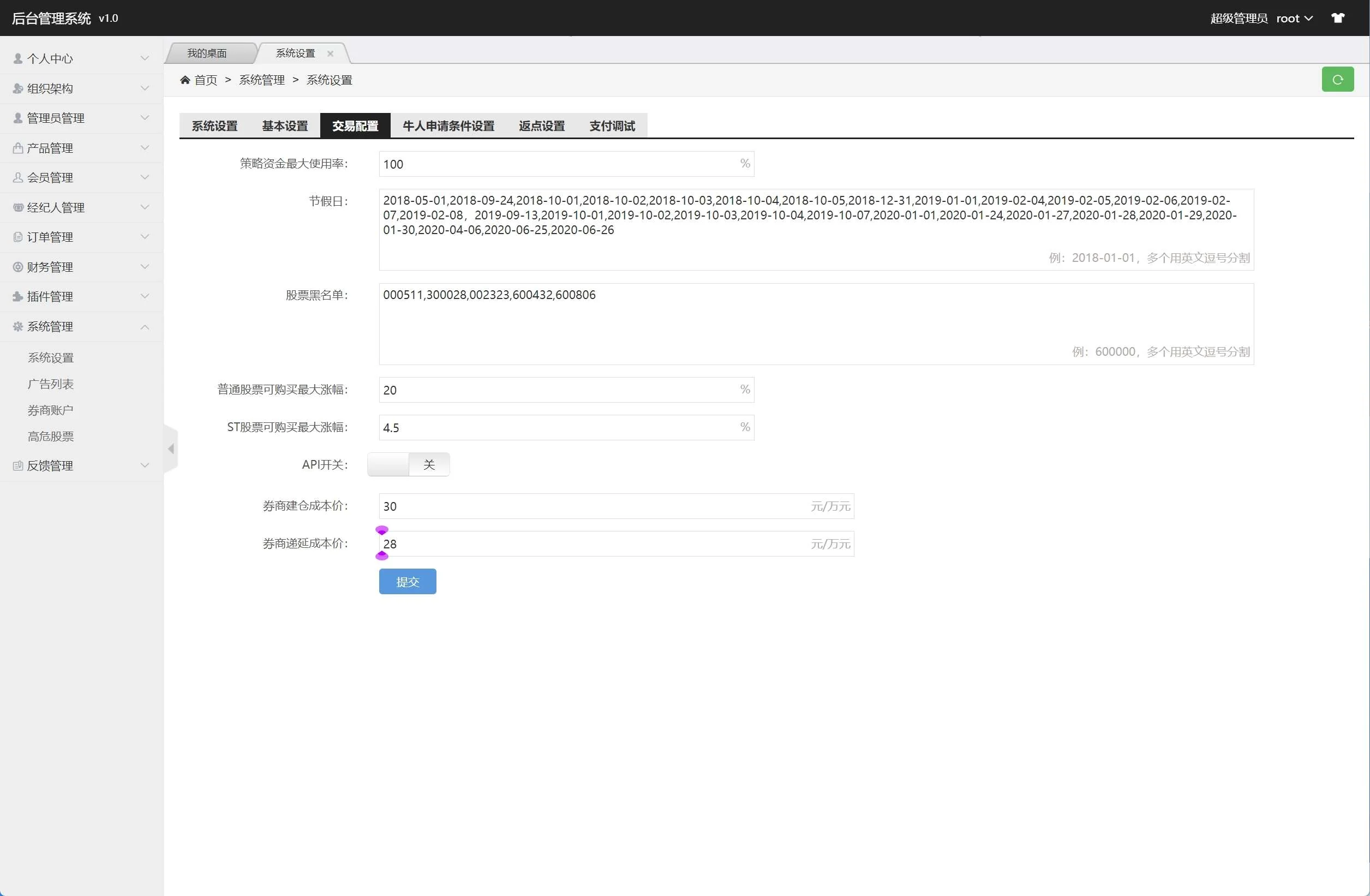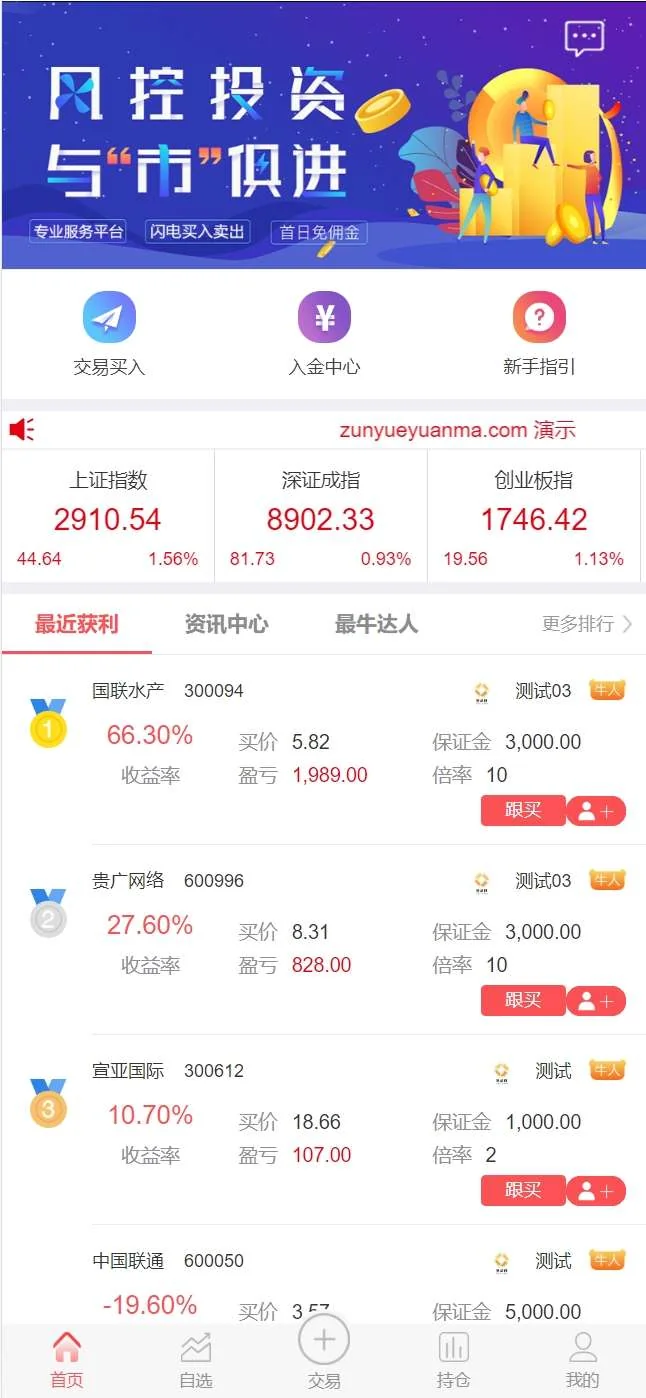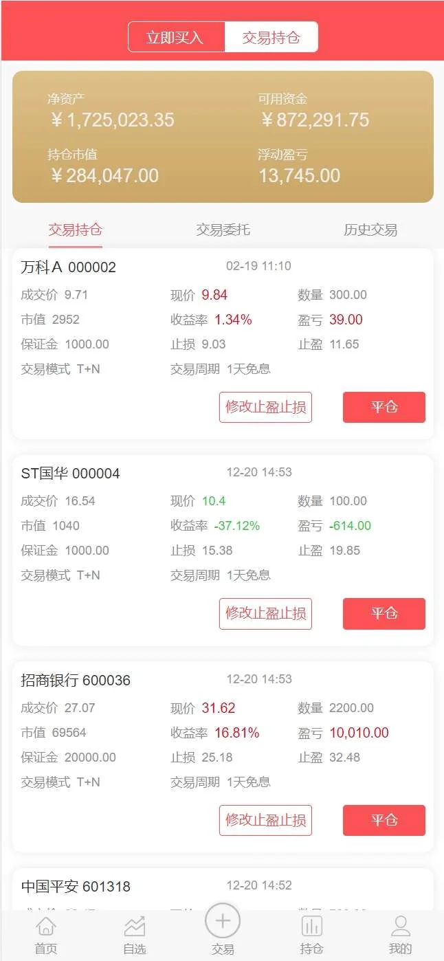 【商业收费源码】股票配资策略系统源码下载 admin 编辑 商品价格 ¥2800 联系客服 立即购买 已测试可商用 已查后门 包含搭建服务 售后 30 天 投资策略匹配资金倍数灵活可选 T+1/d交易、线上入金、实时开户实盘交易 自动计算利息/收取利息、自动结算、提现申请T日买入T+1日卖出,只在买入时收取买入市值的综合手续费。T+1日未卖出,每交易日自动收取下一交易日延期费,实时盈亏后台可查阅,后台可人工强平。页面展示视频 您的浏览器不支持视频播放 您的浏览器不支持视频播放 页面截图
