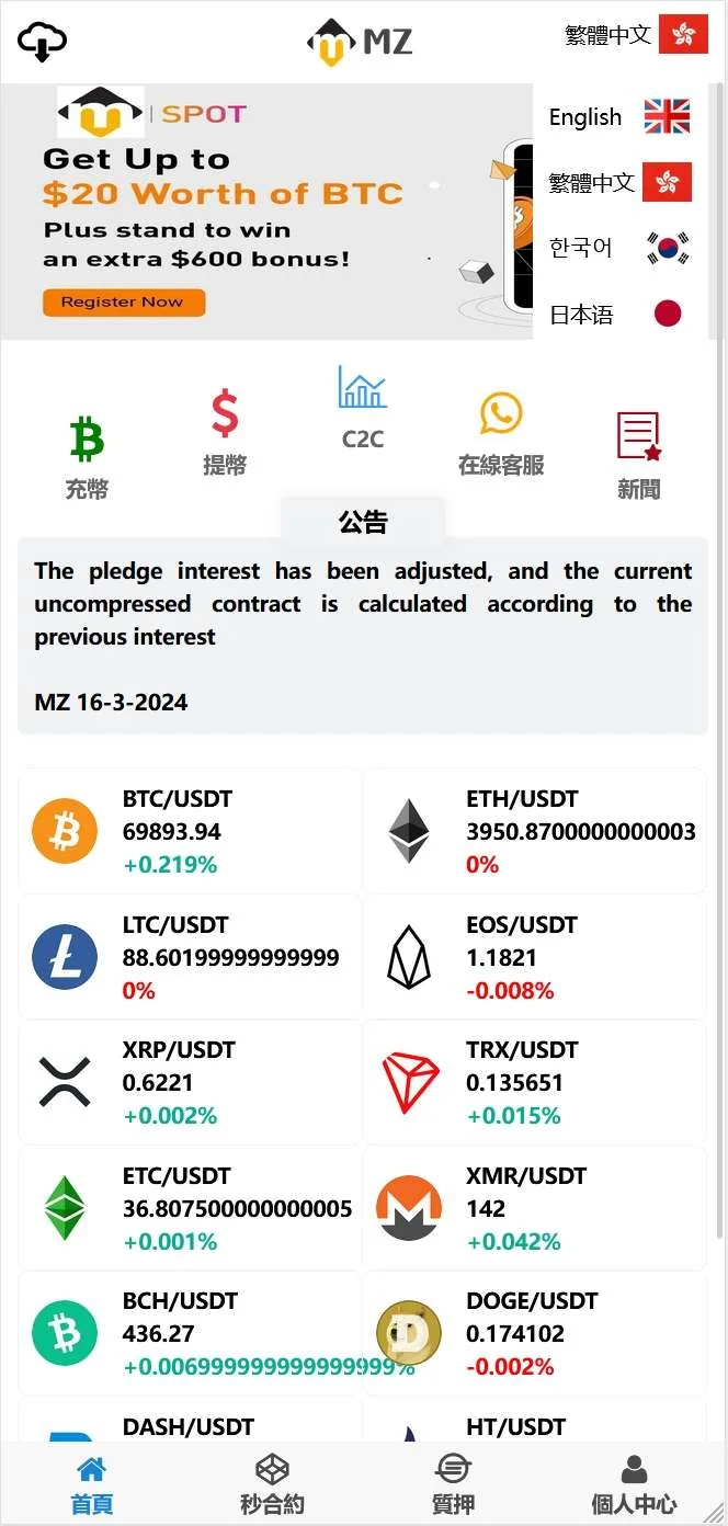 【商业收费源码】4国语言秒合约交易所 admin 编辑 商品价格 ¥1400 联系客服 立即购买 已测试可商用 已查后门 包含搭建服务 售后 30 天 4国语言 繁体 英语 日语 韩语 K线正常 对接货币 秒合约+质押 控制完美页面展示视频 您的浏览器不支持视频播放 页面截图