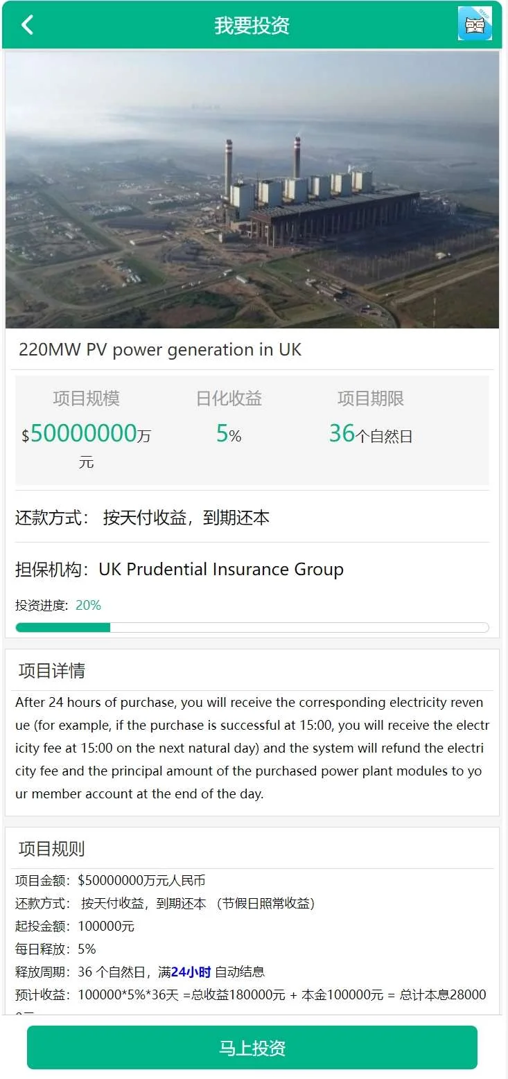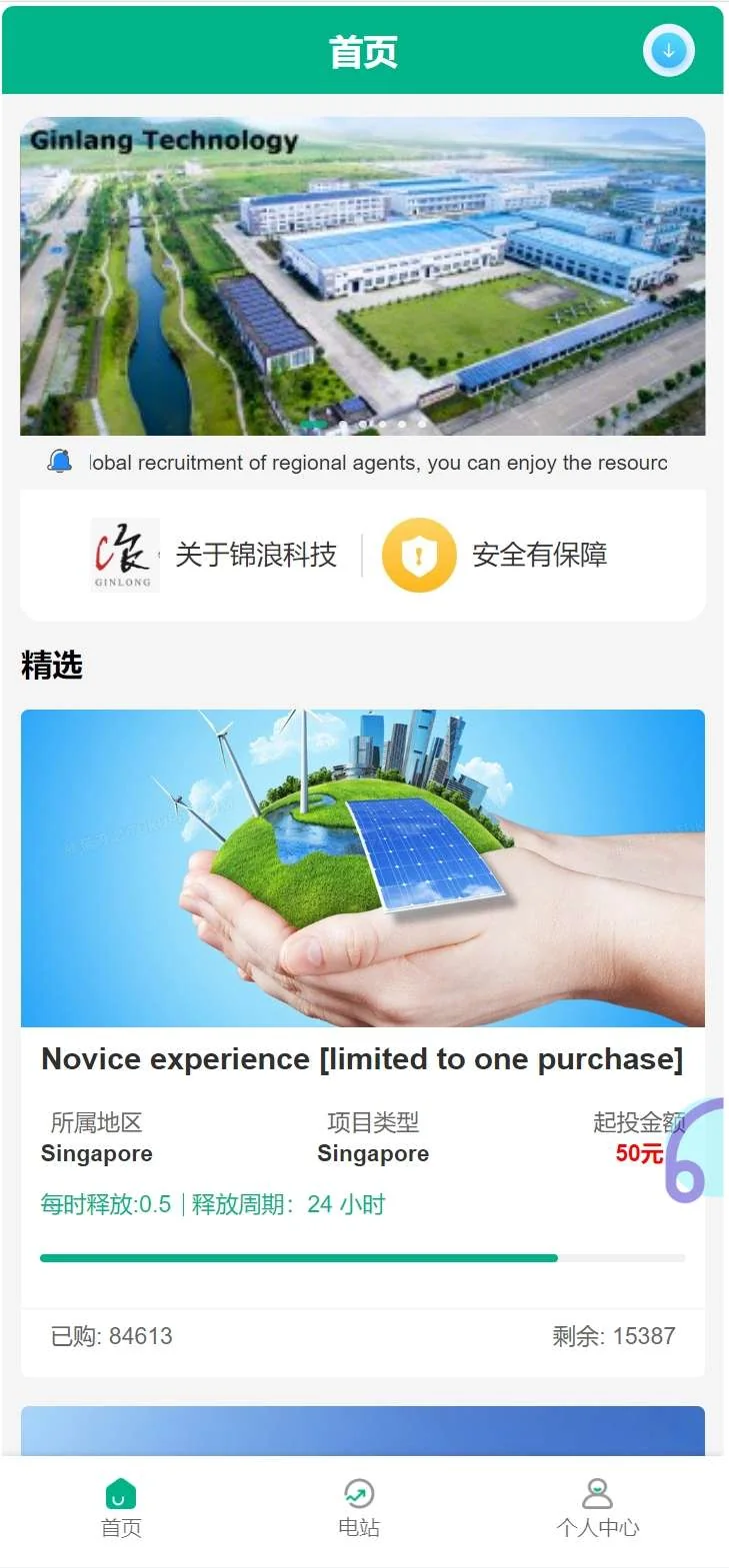 【商业收费源码】光伏新能源投资理财源码 admin 编辑 商品价格 ¥1400 联系客服 立即购买 已测试可商用 已查后门 包含搭建服务 售后 30 天 4国语言 电站投资理财源码 发电站投资项目 国家电投资本控股 全开源无加密页面展示视频 您的浏览器不支持视频播放 页面截图