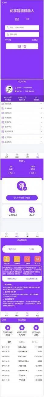 PHP紫色UI优享智能广告系统云点自动挂机赚钱AI机器人合约系统3.0版源码