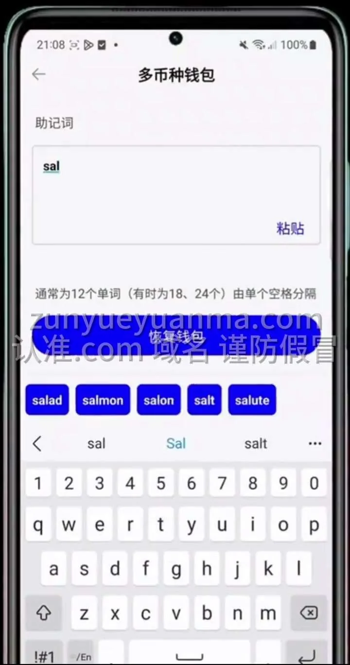 自动发送 提醒他输入助记词的 输入后后台我们就能获取