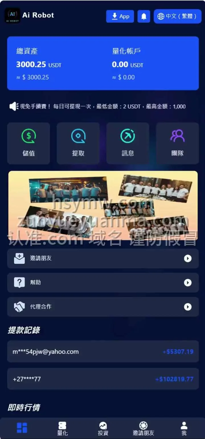 【商业收费源码】AI量化挖矿投资理财系统 22国语言 admin 编辑 商品价格 ¥2100 联系客服 立即购买 已测试可商用 已查后门 包含搭建服务 售后 30 天 22国语言 VUE PHP 全开源 量化挖矿投资理财系统页面展示视频 您的浏览器不支持视频播放 页面截图