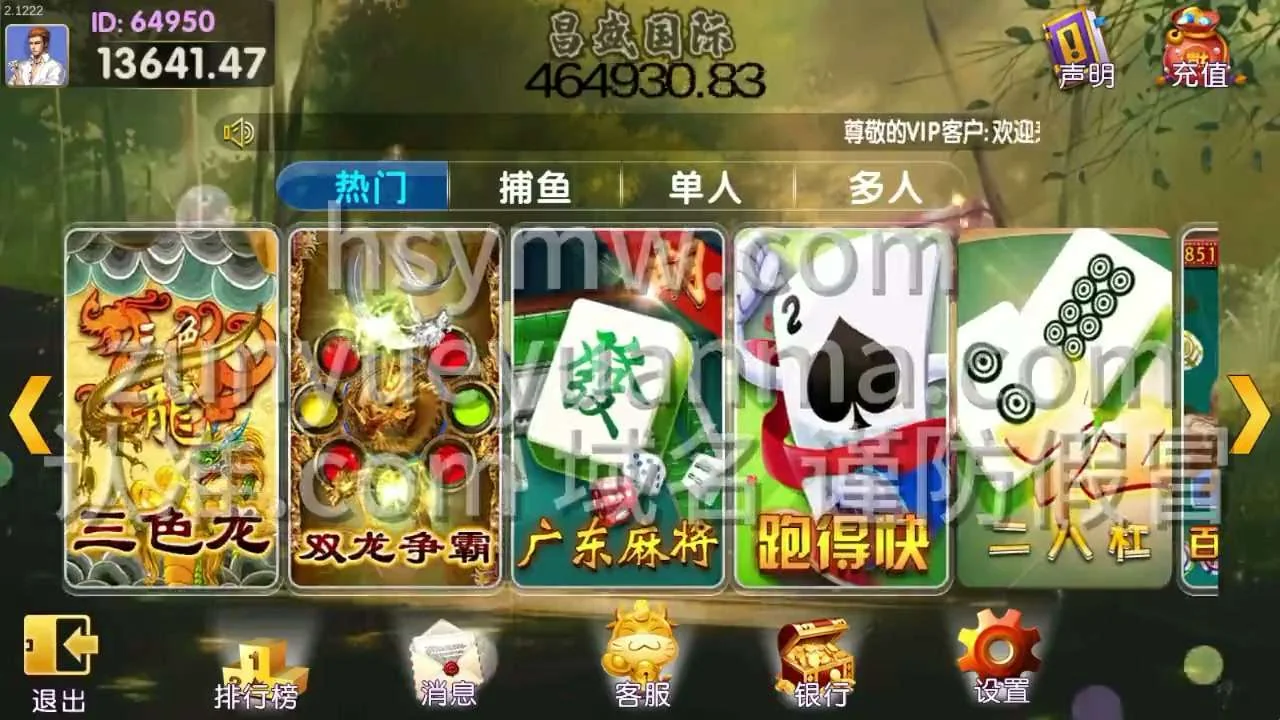 多人:三色龙 双龙争霸 广东麻将 跑得快 二八杠 百人抢庄三公 斗地主 红黑大战 龙虎斗 至尊龙中龙 斗龙 飞龙传说 明牌龙 动感火狮 金鲨银鲨 六狮王朝 超级兰博基尼 骰宝 龙虎 百家乐 五星宏辉 抢庄牛牛 百人牛牛 百人抢庄牛牛 决战天下 斗战胜佛 财神发发发