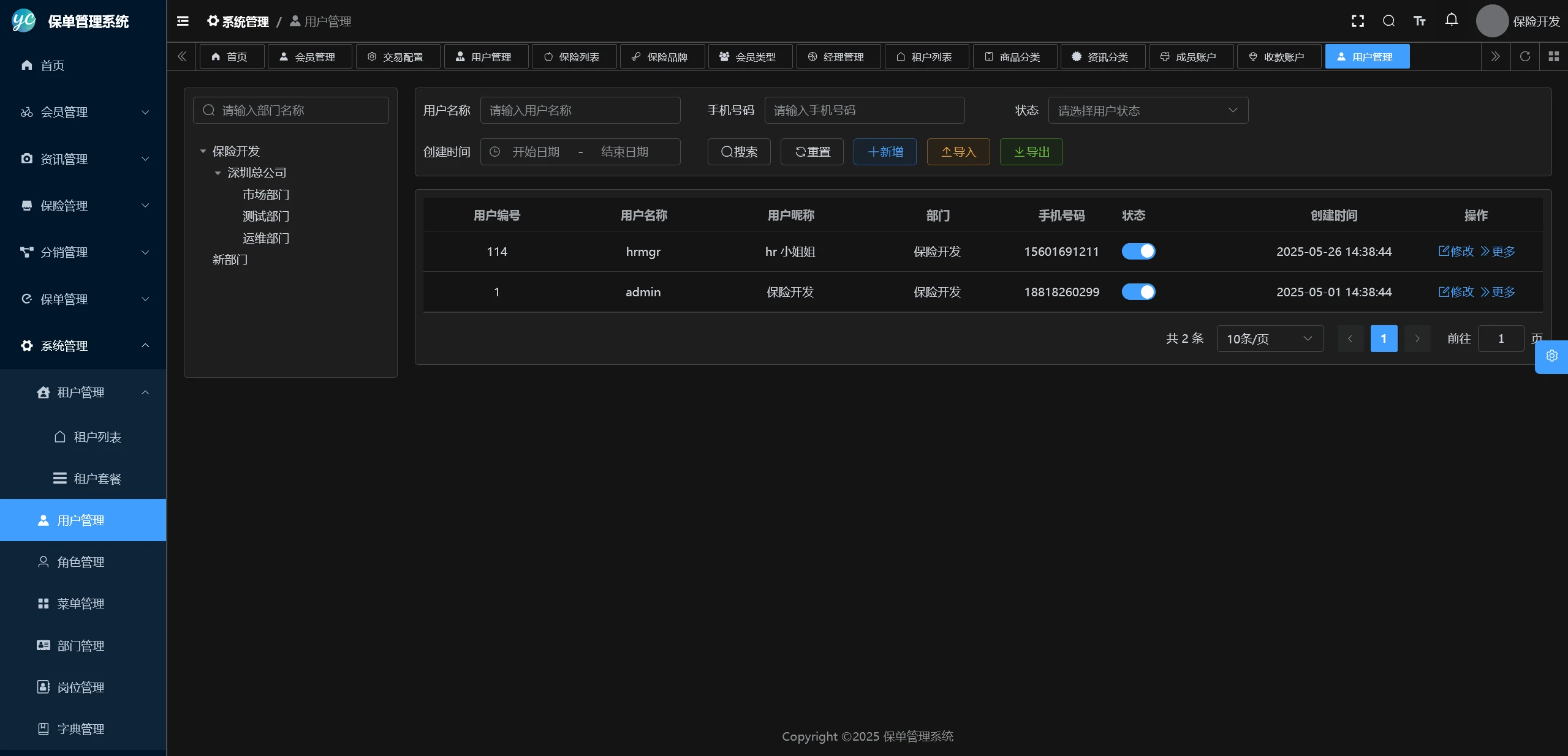 字典管理: 统一维护系统内基础数据字典(如证件类型、职业类别),保证数据一致性。