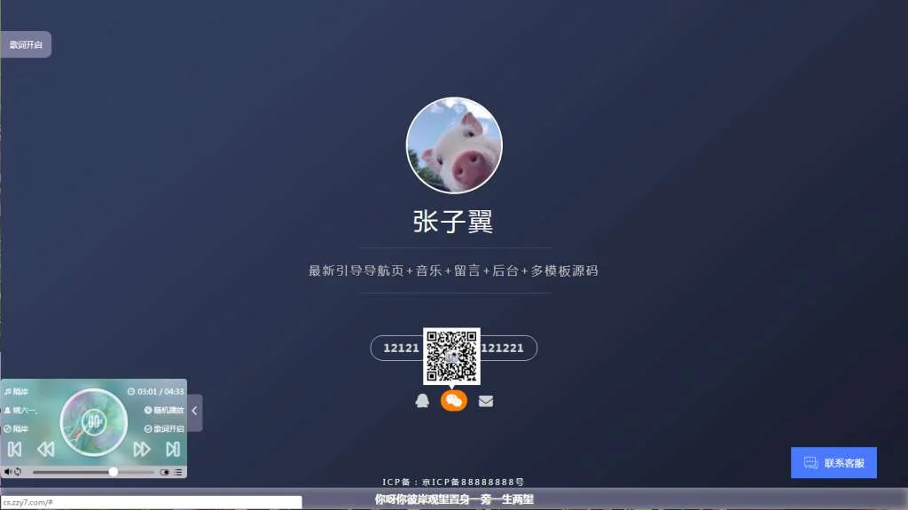 C021 张子翼导航源码V1.1 引导页全开源解密带后台超漂亮音乐+客服+多模板 admin 编辑 商品价格 VIP免费下载 联系客服 立即下载 虚拟商品,自动发货 7 天无忧退款 话不多说,全新的模板,自适应电脑+手机,采用在线播放器,可自己设置歌单,音乐。在线客服接的腾讯的云客服。