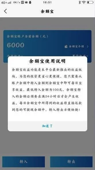 5、仿余额2 $ J v宝功能,存钱在余额里也有利息。