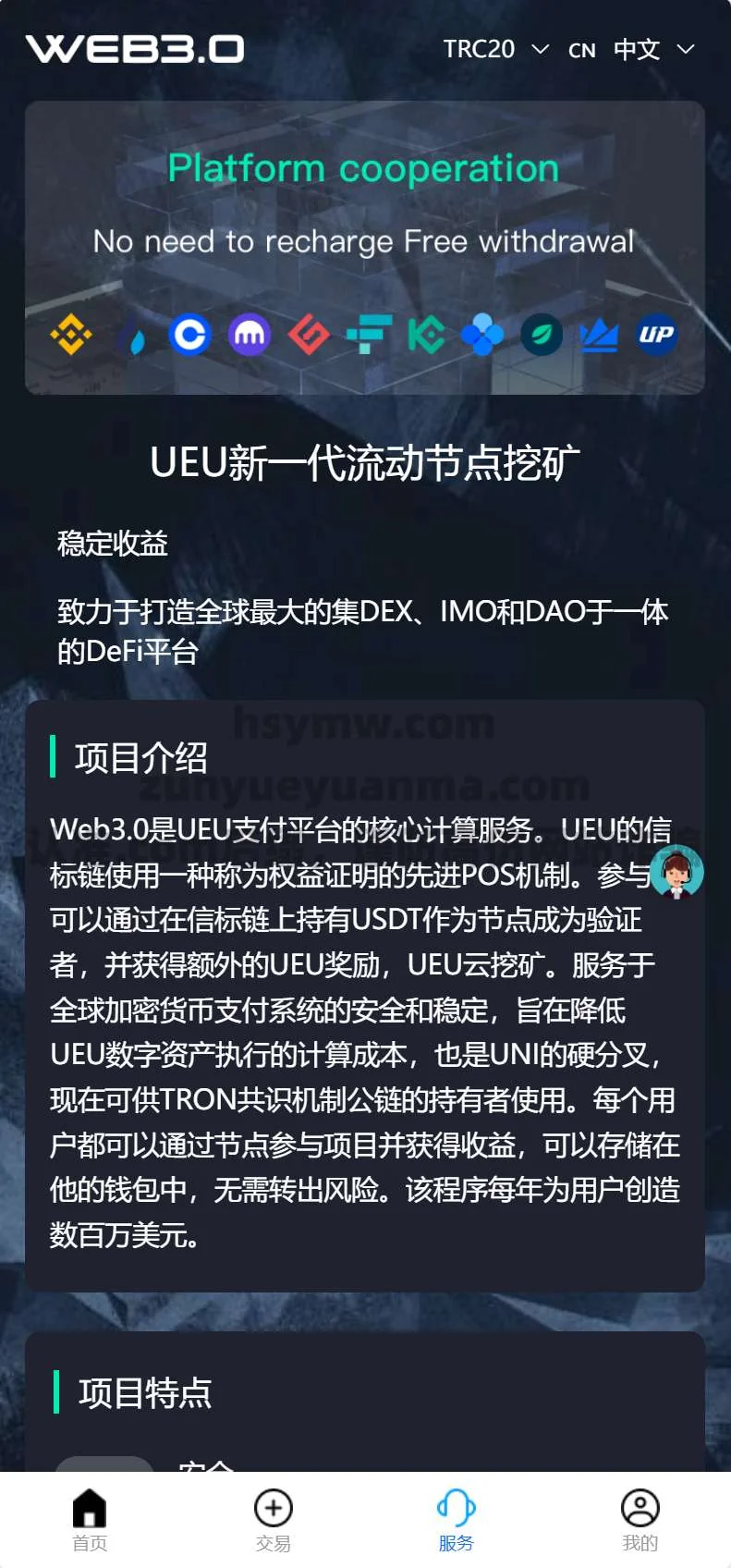 【商业收费源码】WEB3 质押挖矿盗U投资理财源码 admin 编辑 商品价格 ¥2100 联系客服 立即购买 已测试可商用 已查后门 包含搭建服务 售后 30 天 PHP开源 DAPP 质押挖坑申购盗u 质押生息 项目申购 多种模式 支持多语言 三链Trc Erc BSC页面展示视频前台 您的浏览器不支持视频播放 后台 您的浏览器不支持视频播放 页面截图