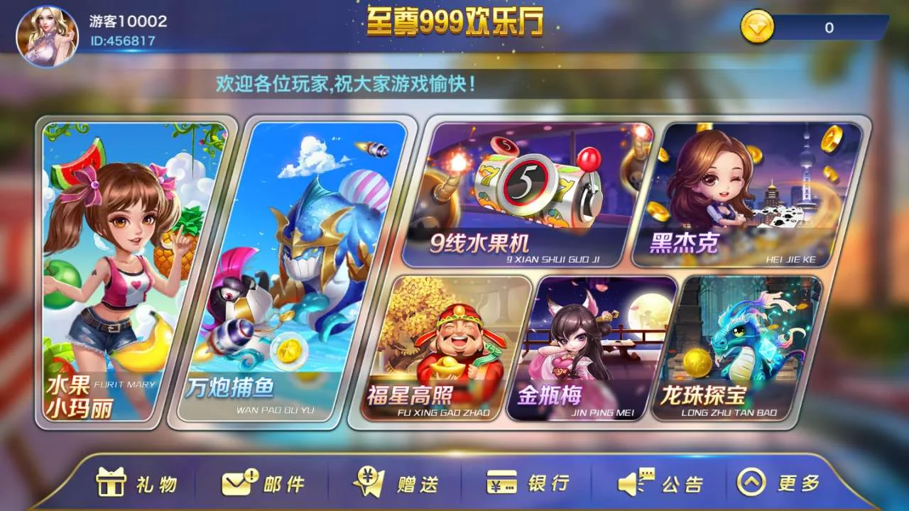 至尊999欢乐厅QP游戏来了,至尊999欢乐厅堪称完美的线上电玩城游戏大厅,其支持9线拉王、黑杰克、福星高照、龙珠探宝、万炮捕鱼、楚汉河界、冰上曲棍球等玩法,平台还有礼物赠送功能,游戏币、钻石等欢乐不停,感兴趣的小伙伴们快来下载至尊999欢qp游戏代理乐厅试试吧!