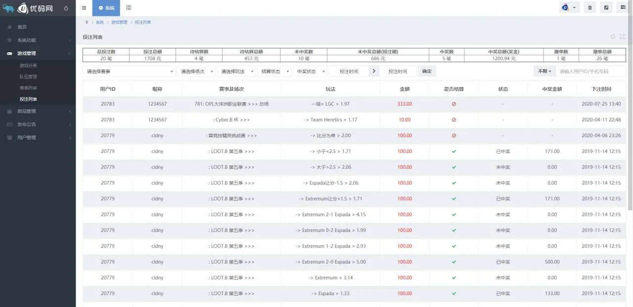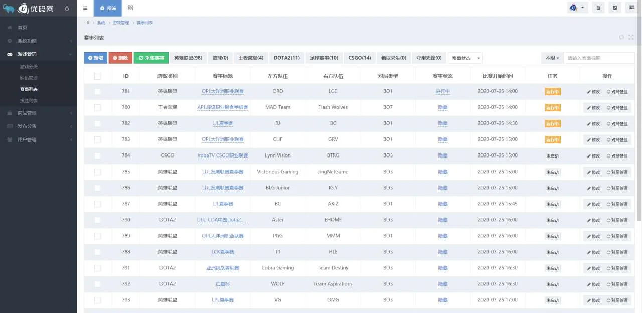 【华人电竞 / 电竞比分源码 / 可封装APP】后台界面实测截图