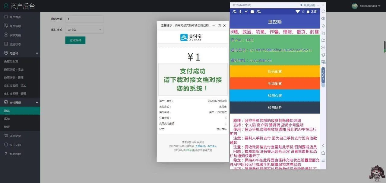 支付原理:支付通道实现 支付平台才可实现对外收金,两者缺一不可。 变现原理:款项直接转换成虚拟币类型,然后去找承兑商换购现金,真正意义上的D0,资金保障 通道:微信扫码H5,支付宝扫码,支付宝原生H5 功能:支持账号轮询配合支付平台实现多商户功能 回调:宝塔后台监控,无需软件挂机