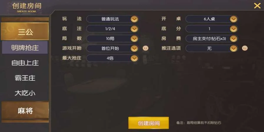 三/公玩法:明牌抢j g D g庄、自由上庄、霸王庄、大/吃/小