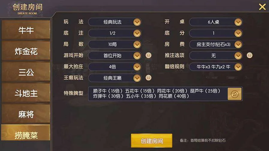 牛/牛、炸金花、三/公、斗地主、麻将、捞腌菜、跑胡子