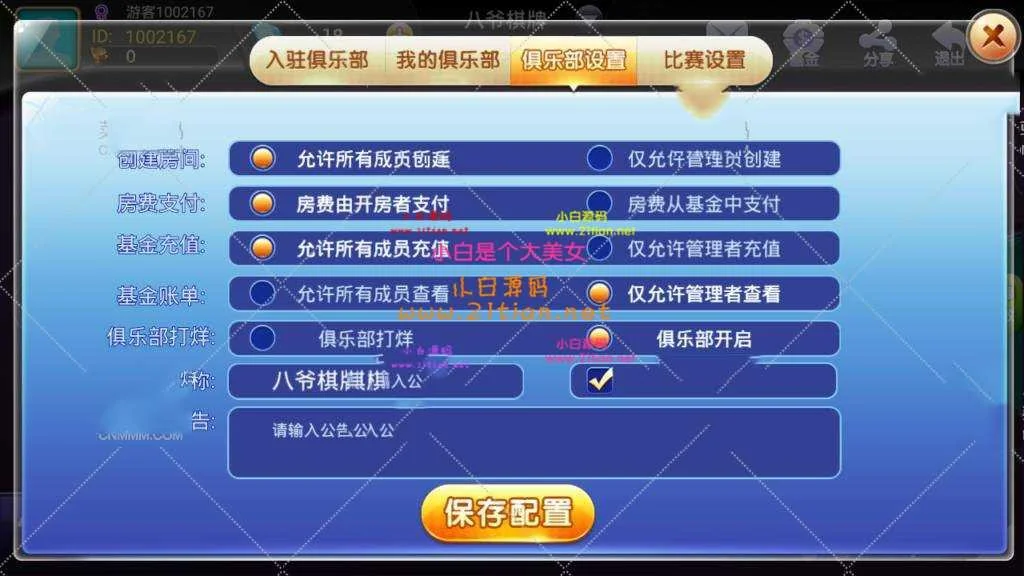 源码描述:和牛大亨,战斗牛一个级别的,超级OK的。还是一样,吃肉的好货完美运营组件。直接接单,完美运营的,有天卡,周卡,月卡等等,这个就不用我说了,还有分成,俱乐部有特权,m 1 X i不需要我多解释了吧再说句题外话,好多人D 3 I B M ` [说外, Q $ k b面好多论坛有战斗牛,牛大o W u 7 / $亨,我只是想说,你们如果2 V $ @ 2不怕被骗就去s K 9 )花钱吧,那些都是假的,里面都是货不对板的假东西。好了,先来看看图吧,很好的东西,目前市场! S s y 5价1.5W左右