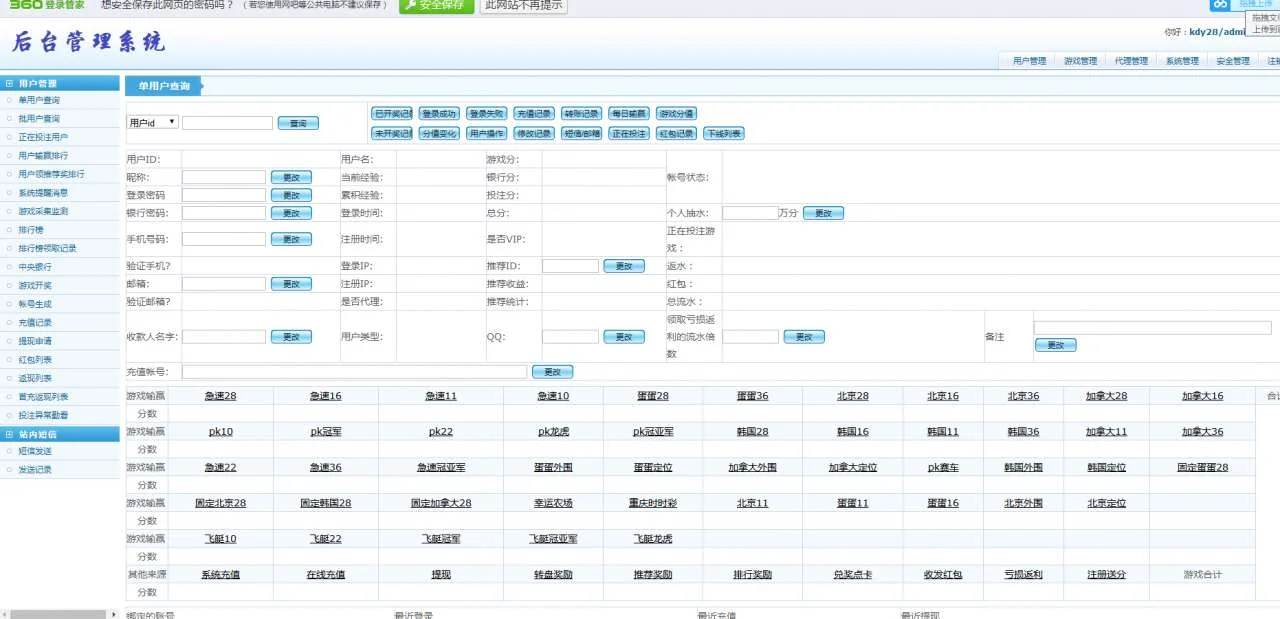 滴滴28源码ssc平台源码+带手机wap端+内置kj+完整数据 admin 编辑 商品价格 VIP免费下载 联系客服 立即下载 虚拟商品,自动发货 7 天无忧退款 源码介绍带有多款集成的 主流游戏玩法,这种程序看起来是最不像BC的程序了,基本上都不会被浏览器拦截爆红。还是非常可以的。有简单的搭建说明,需需要啊的可以拿去研究研究。根目录为 main/后台/admin 都需要单独绑定nginx +mysql +php5.4 以上后台账号kdy28/admin【这个就是账号/带斜杠】 密码123456数据库修改链接在data/config网站截图 后台截图