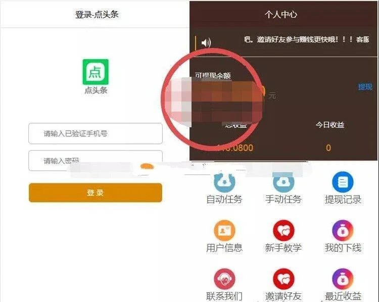 2、内容页可自动刷新、滚动。每刷新更换一篇 同时增加余额,限制每个用户每天刷新的次数