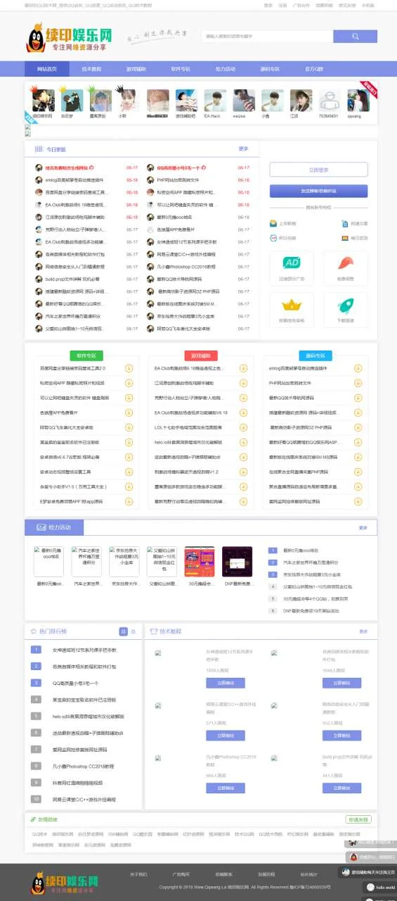 娱乐网站QQ技术教程资源分享网站源码下载 WAP+在线投稿 admin 编辑 商品价格 VIP免费下载 联系客服 立即下载 虚拟商品,自动发货 7 天无忧退款 源码介绍娱乐网站QQ技术教程资源分享网站源码下载 WAP+在线投稿源码的安装方法要比wp简单得很上传好源码后,将文件导入数据库,最后修改数据库配置即可后台的话直接在前台登录即可账号admin_xy密码admin888…网站截图